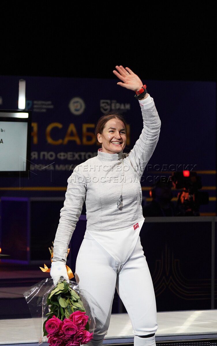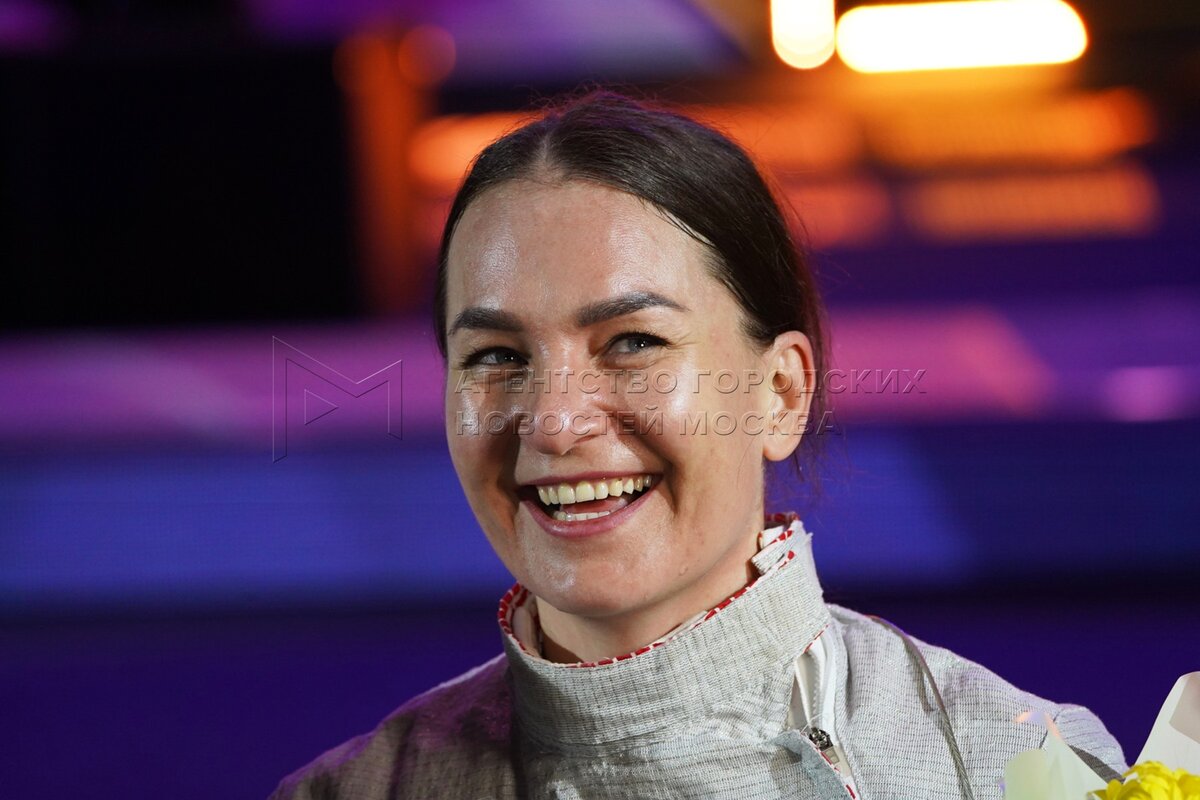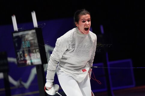 Саблистка Софья Великая радуется победе в финальном поединке среди женщин против ...
