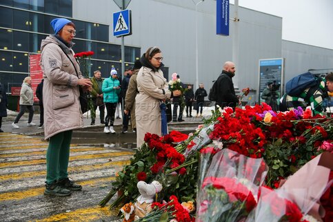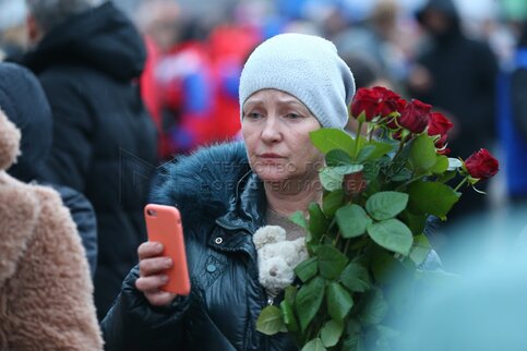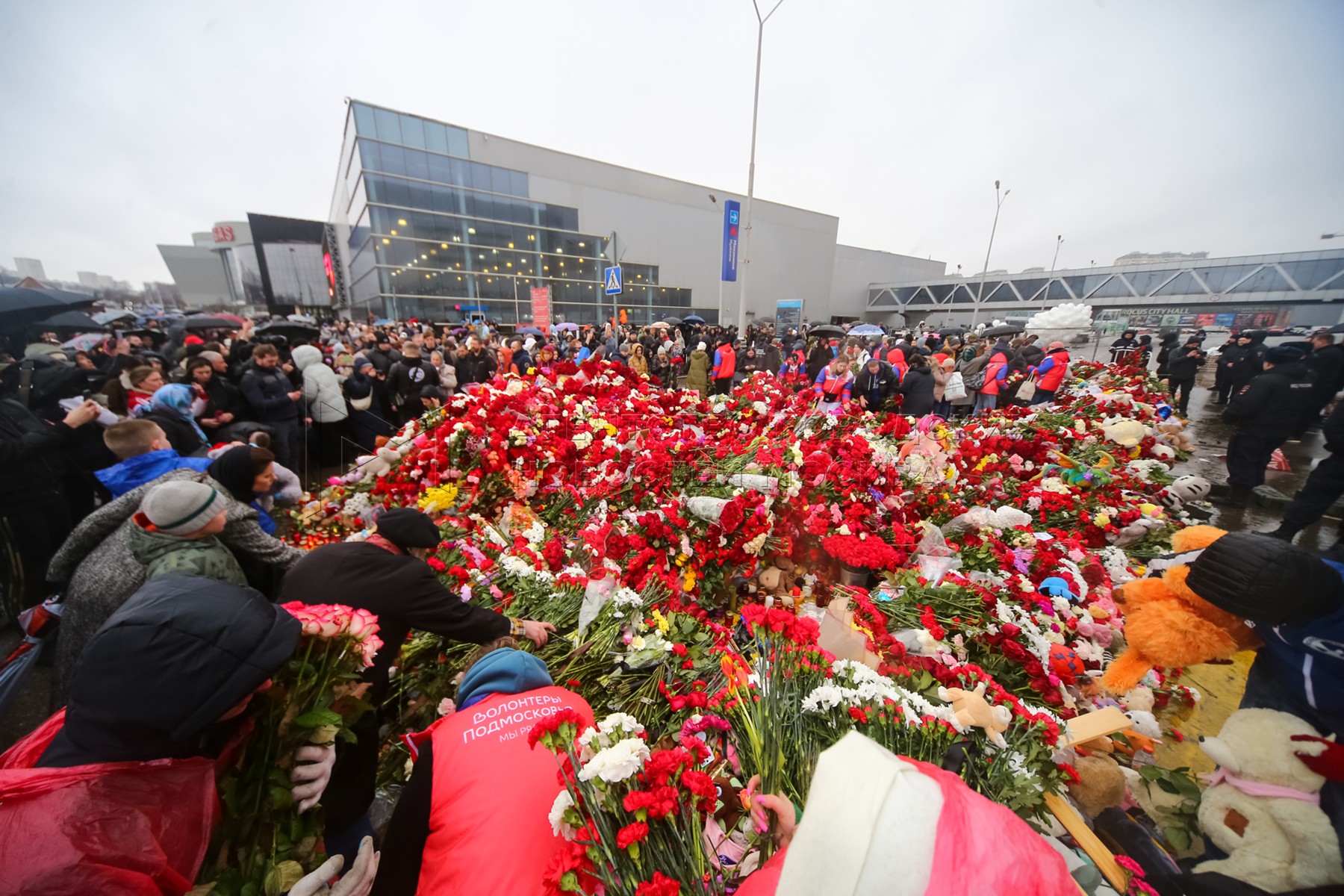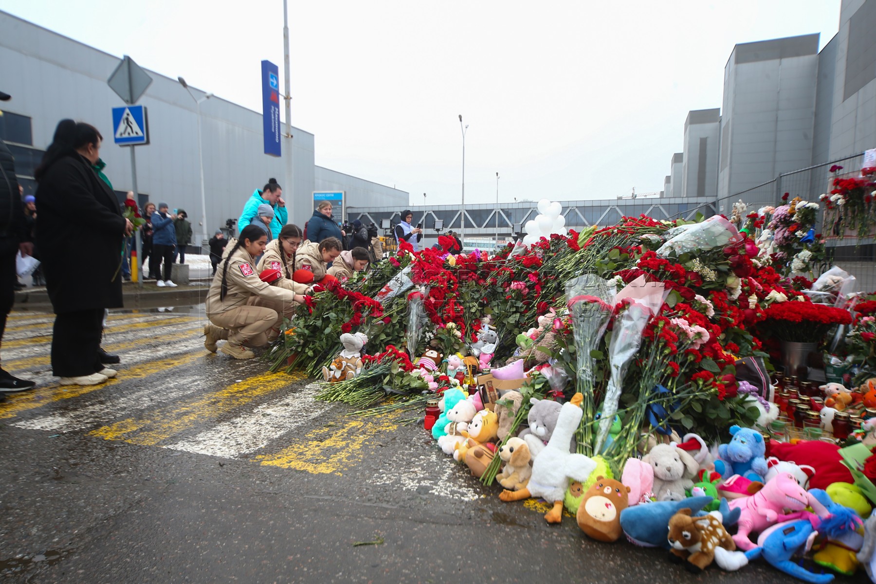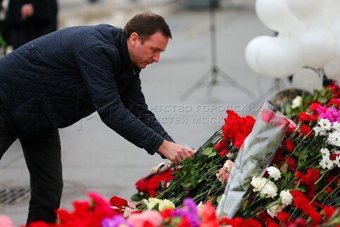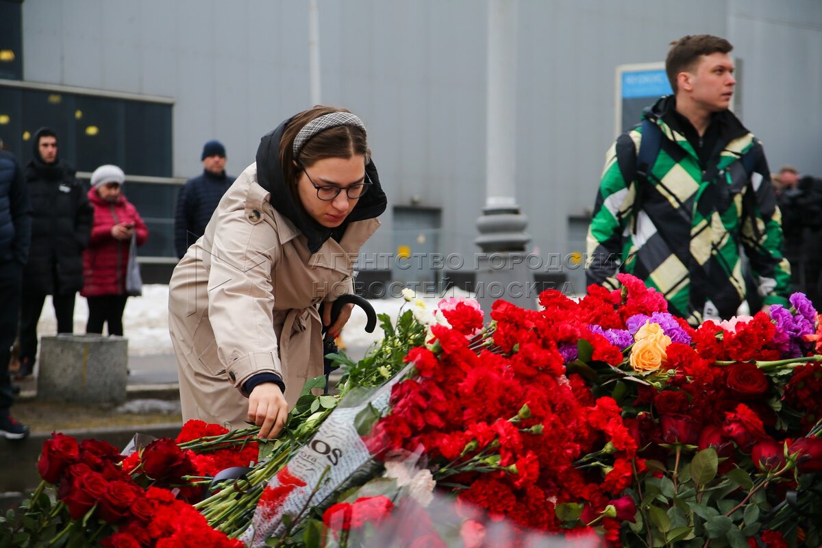 Возложение цветов в память о жертвах теракта в подмосковном Crocus City Hall.