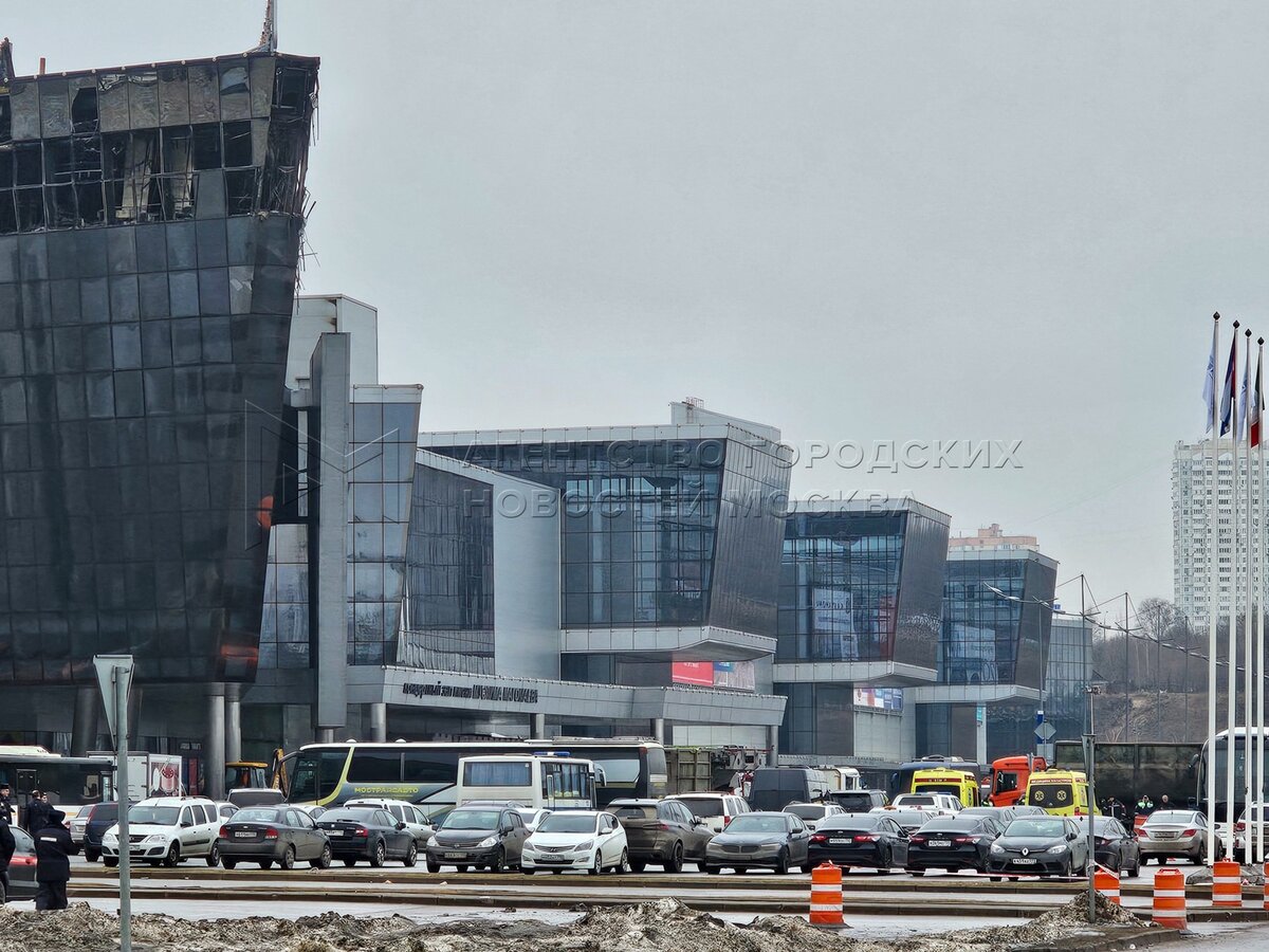 Люди стоят в очереди на возложение цветов в память о жертвах теракта в подмосковн...