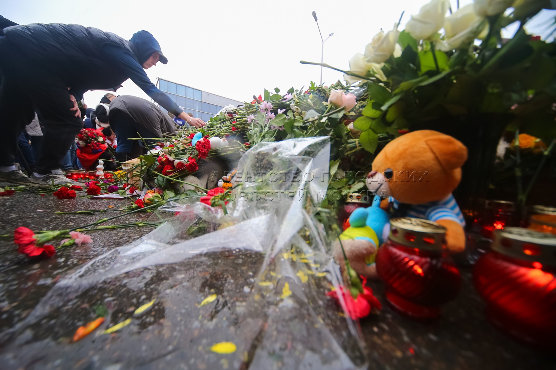 Цветы, свечи и мягкие игрушки в память о жертвах теракта в подмосковном Crocus Ci...
