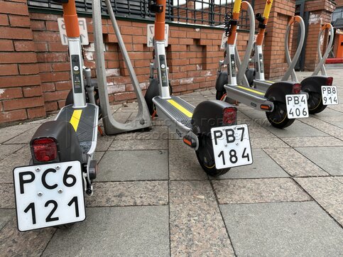 • Описание: Самокаты сервиса кикшеринга Whoosh на улицах Москвы.