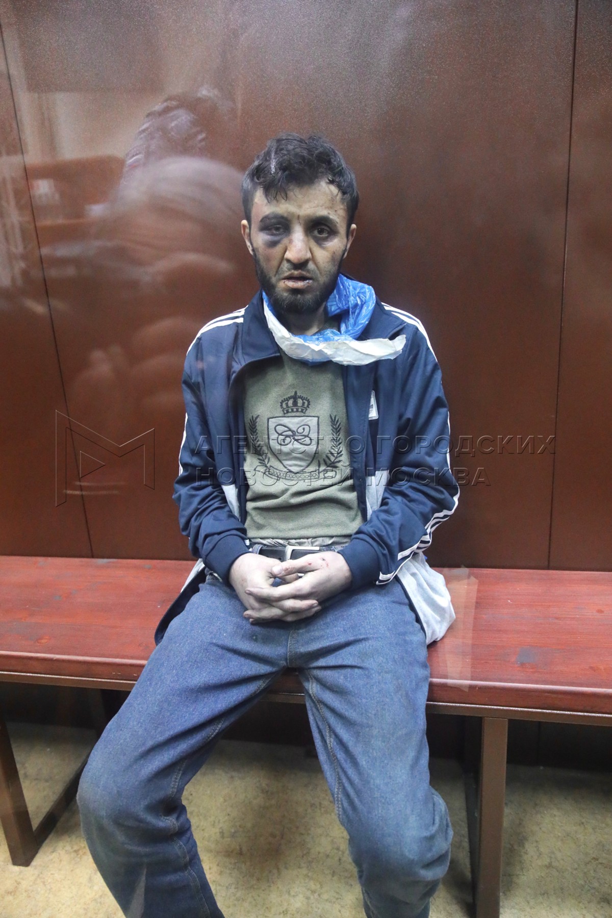 - Описание: Рачабализода Саидакрами Муродали, задержанный по подозрению в террористическом акте в «Крокус Сити Холл», в здании Басманного суда Москвы, где проходит избрание меры пресечения в отношении четырех задержанных подозреваемых.
