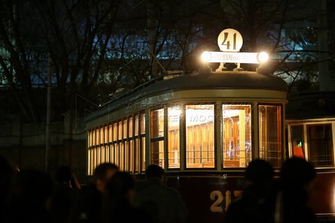 • Заголовок: Ночная репетиция парада трамваев