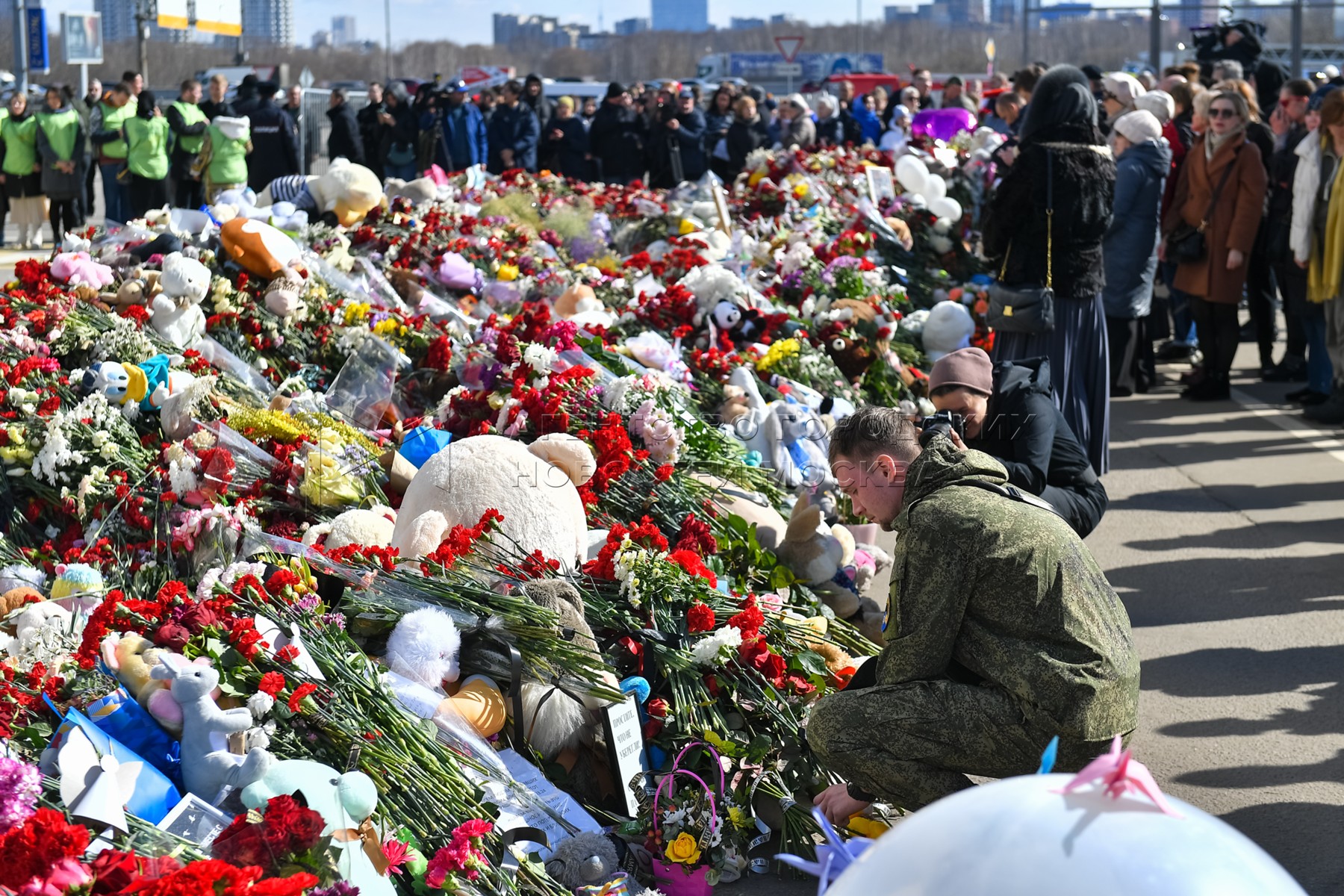 • Заголовок: Панихида по погибшим в результате теракта в Crocus City Hall у стихийного мемориала
