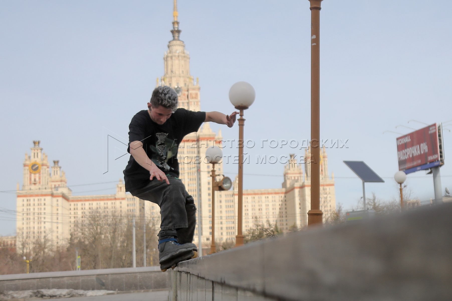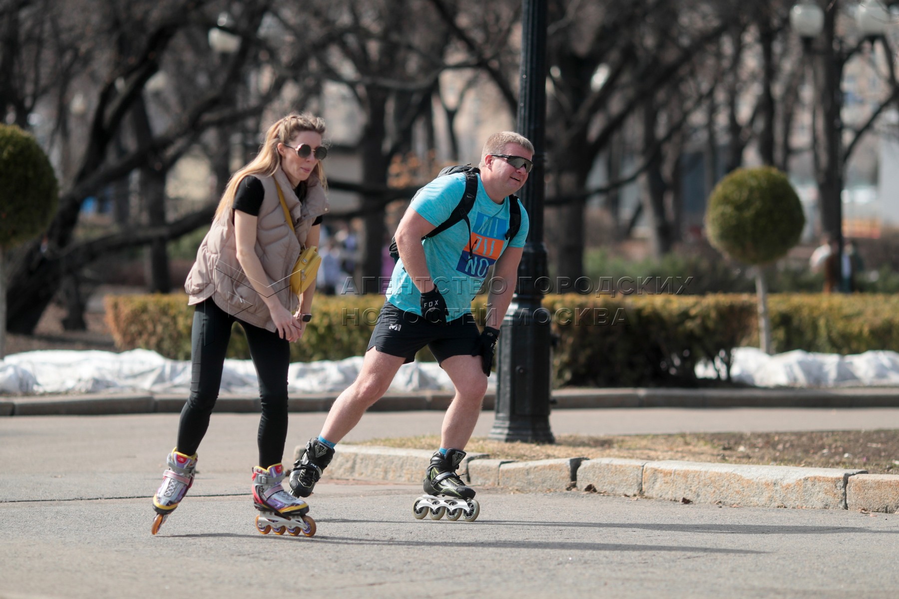 Теплая погода в Москве 1 апреля 2024 года. Катание на роликах.