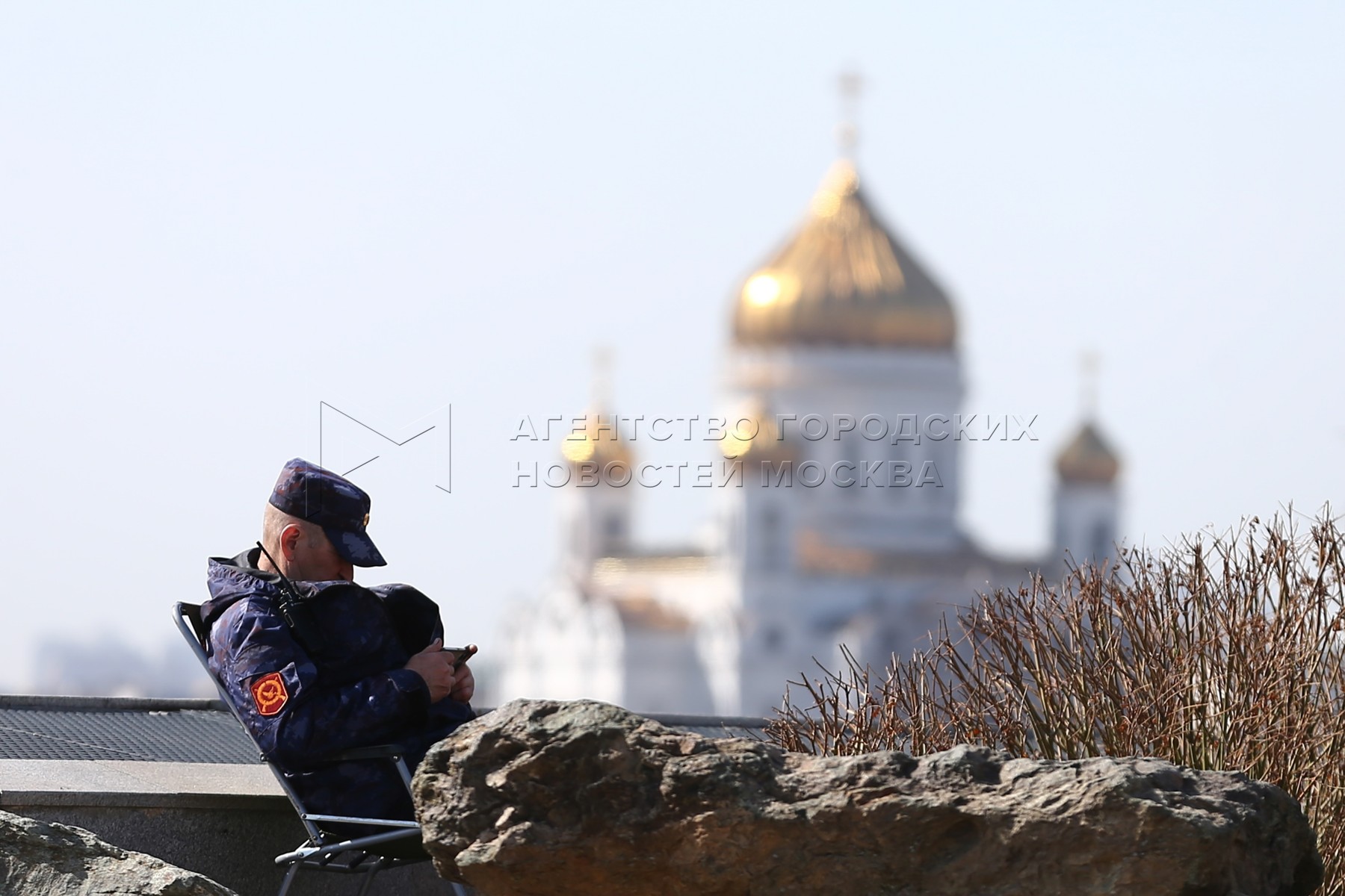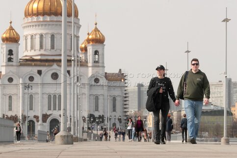 Теплая погода в Москве 1 апреля 2024 года. Храм Христа Спасителя и Патриарший мос...