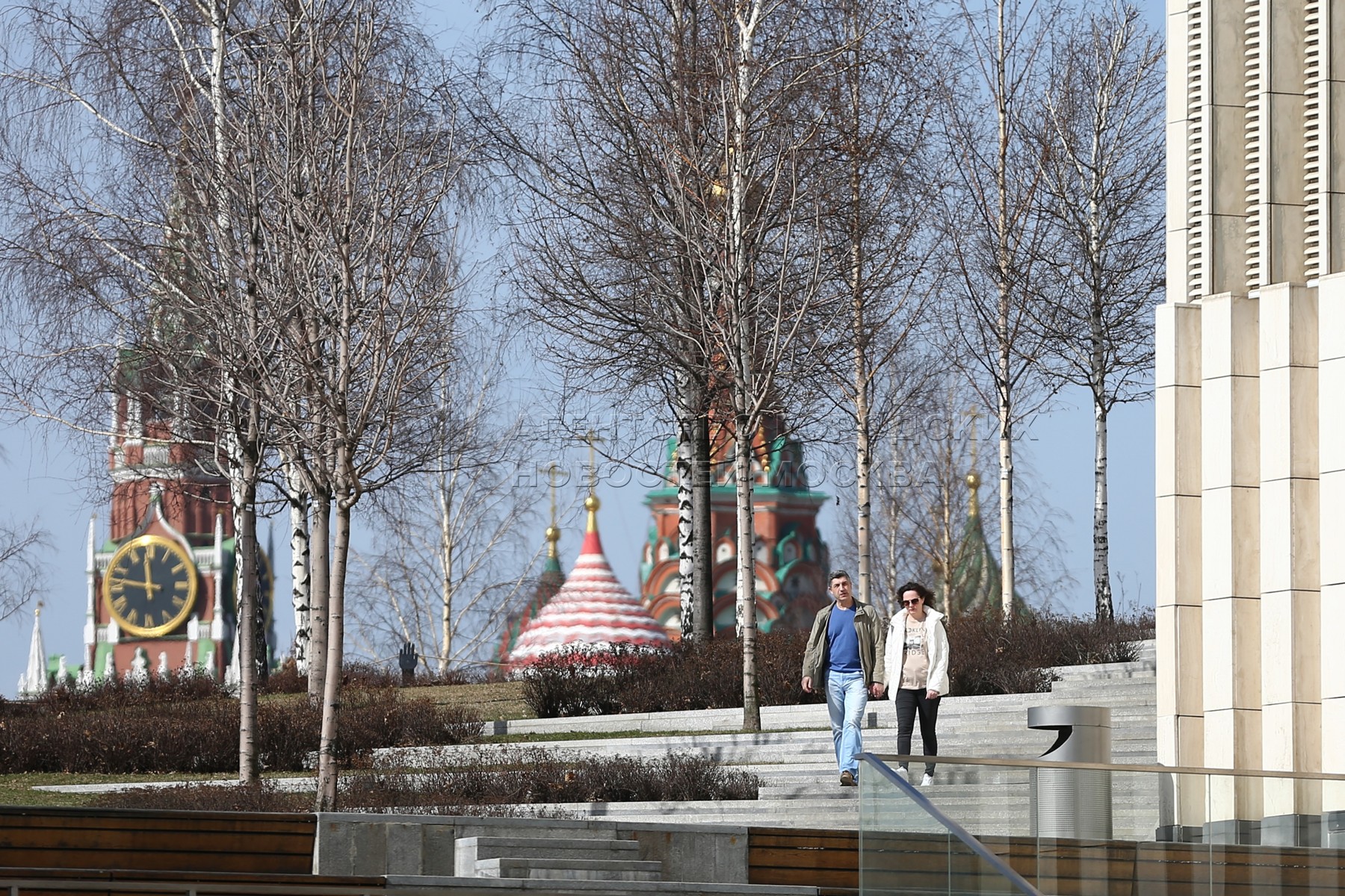 Теплая погода в Москве 1 апреля 2024 года. Парк Зарядье.