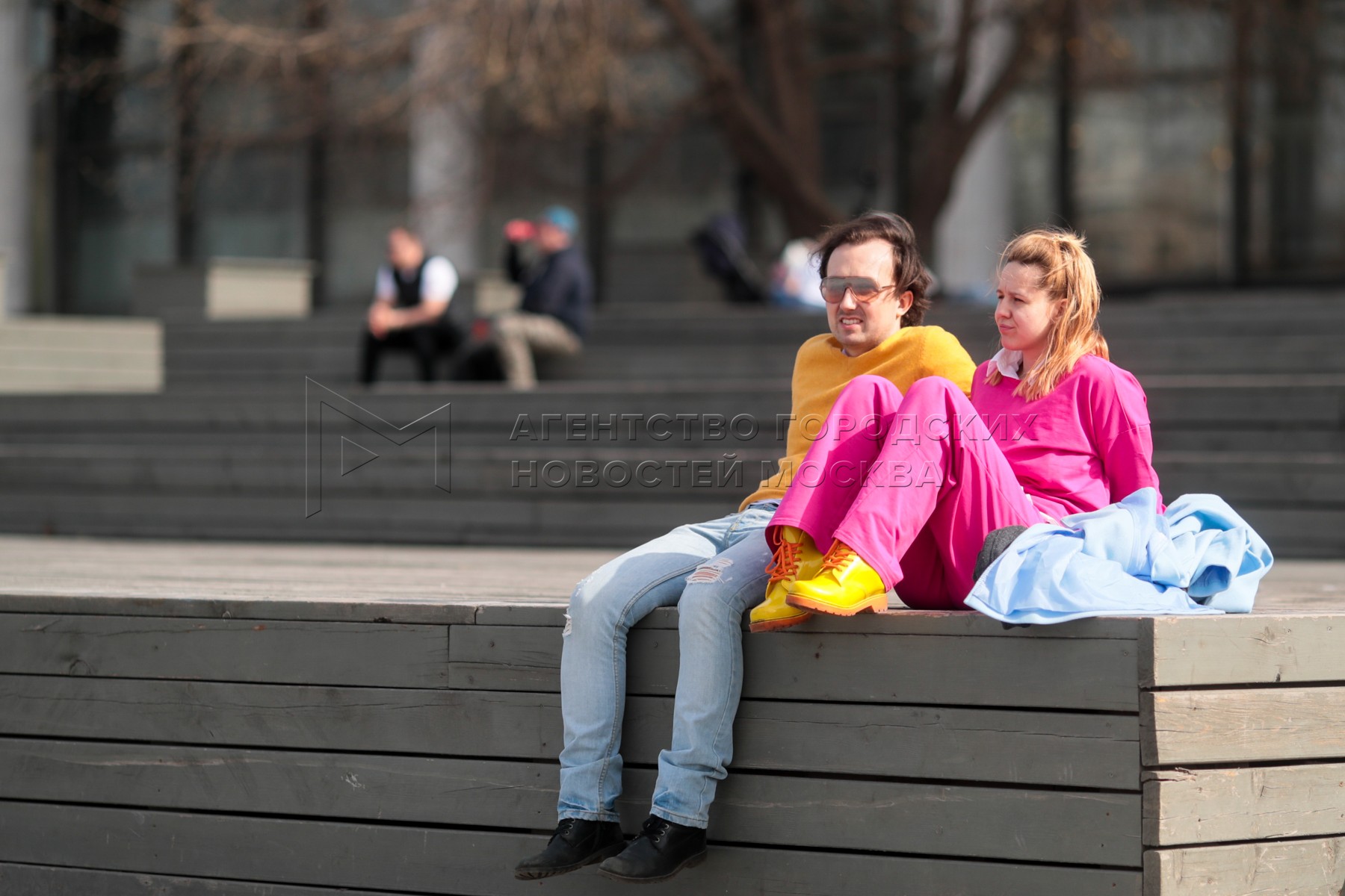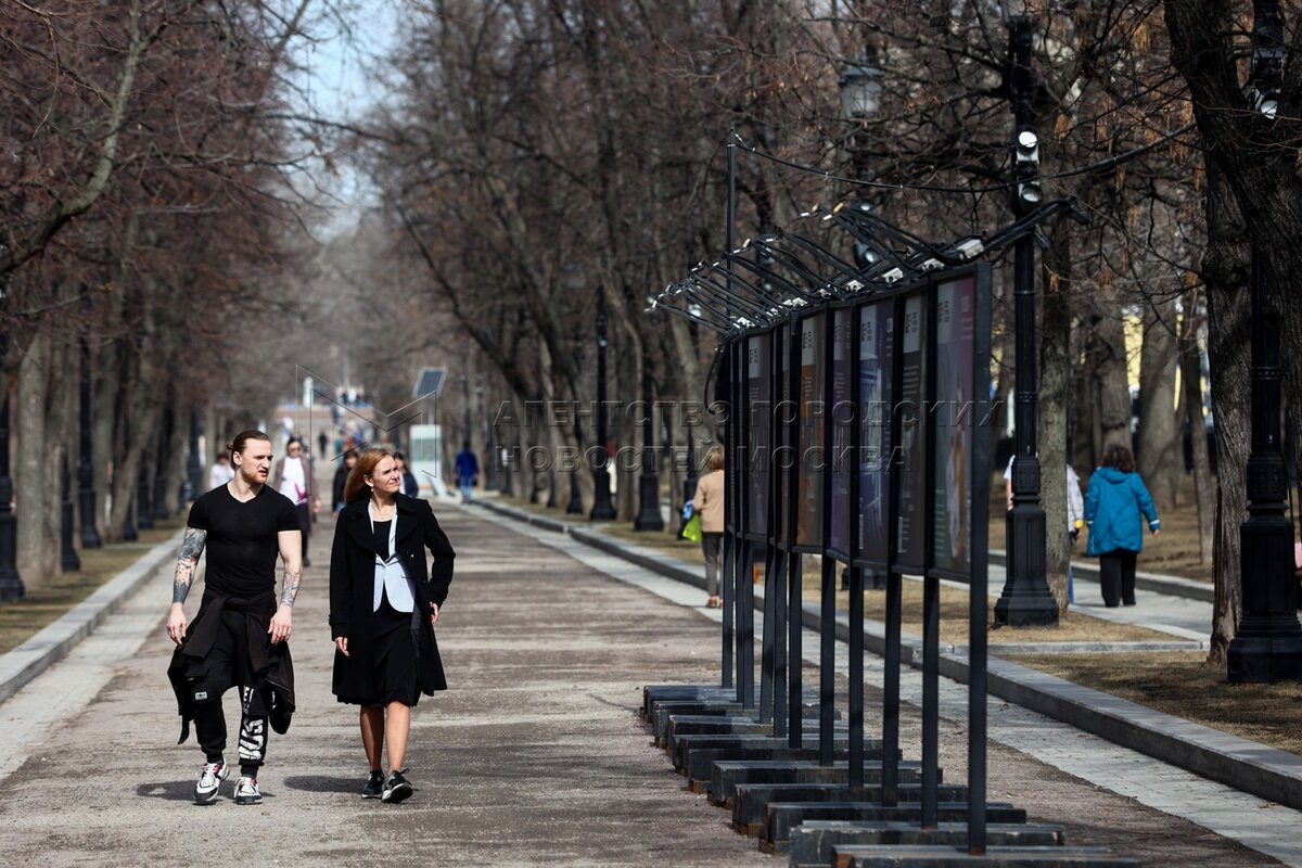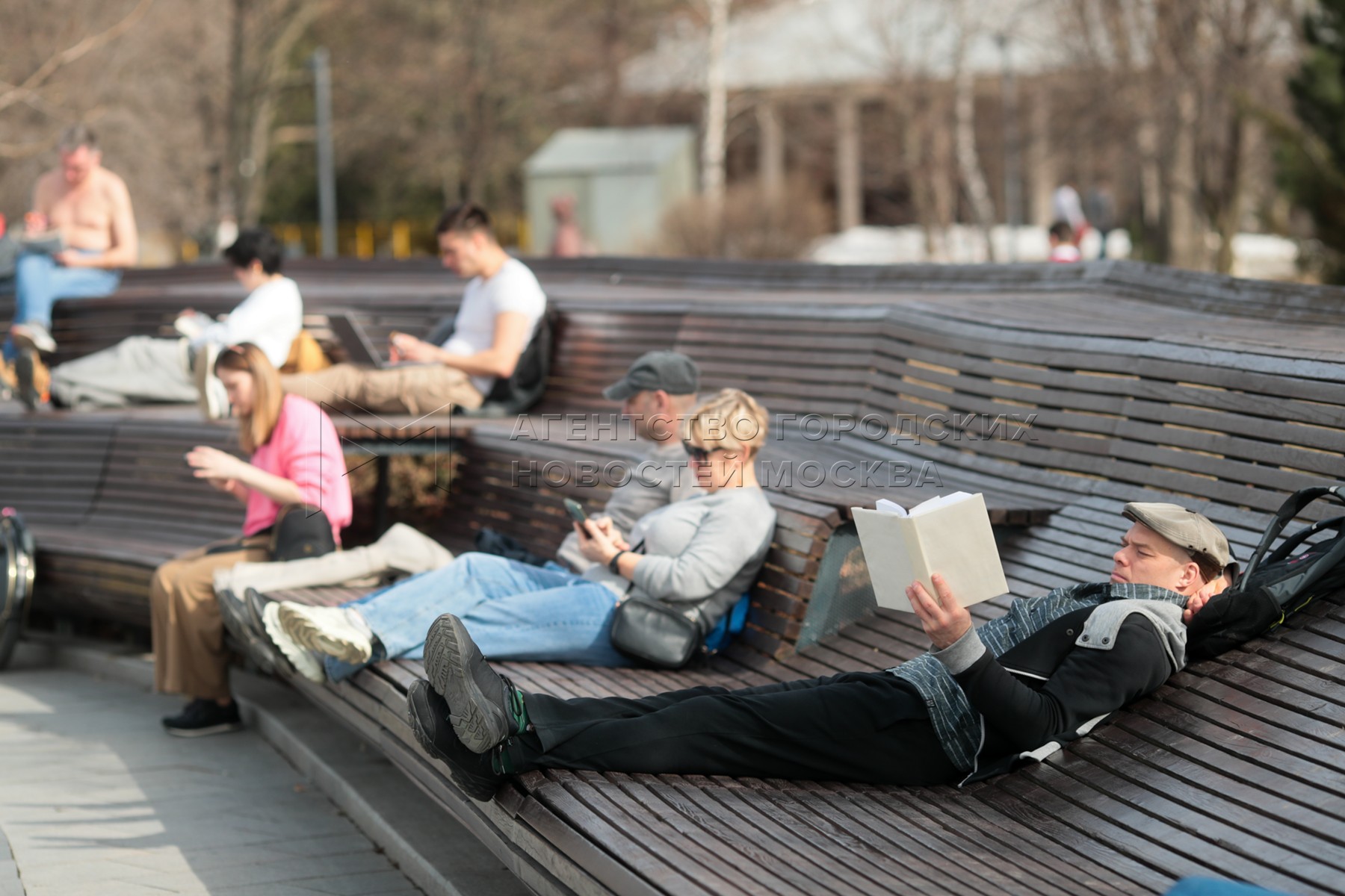 • Описание: Теплая погода в Москве 1 апреля 2024 года. Отдых горожан в парке Музеон.