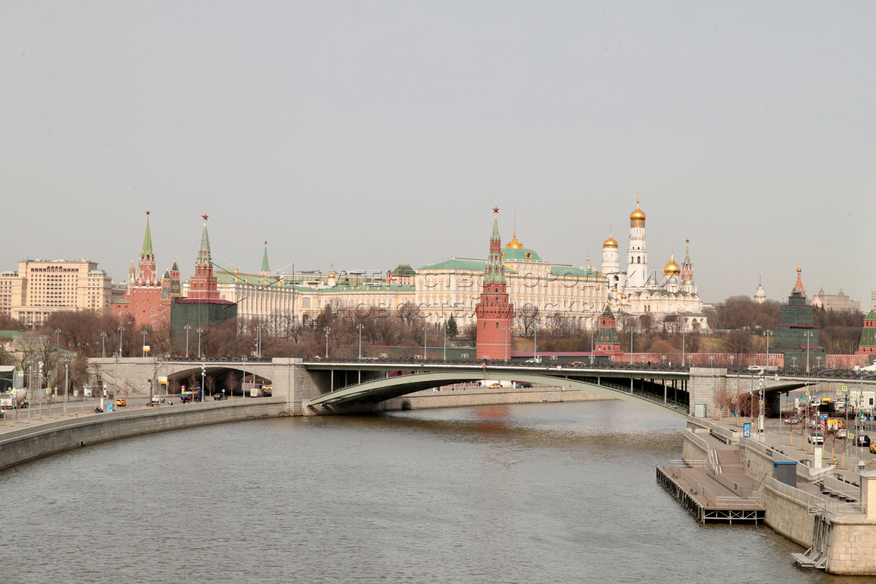 Теплая погода в Москве 1 апреля 2024 года. Москворецкая набережная и вид на Кремл...