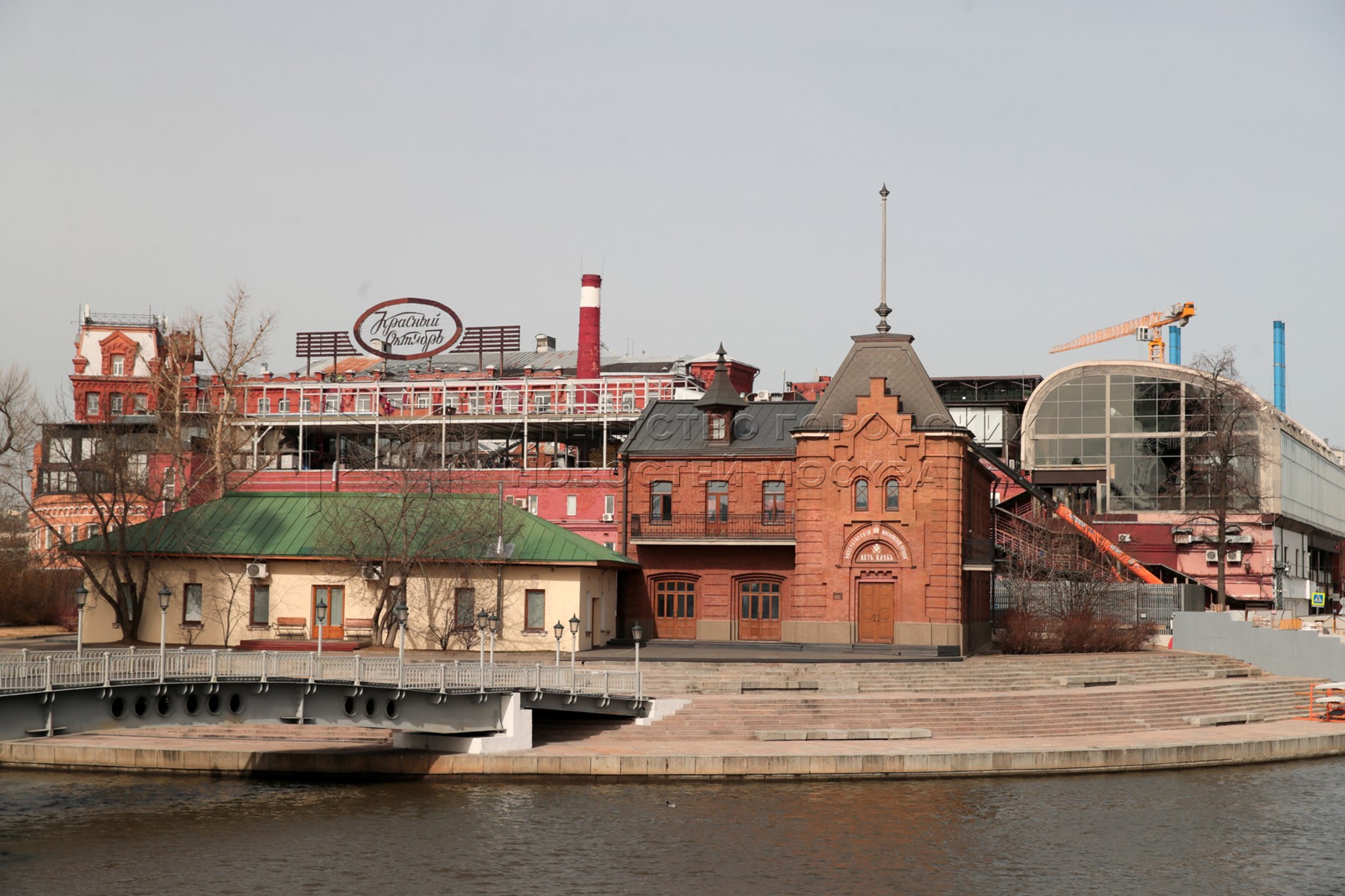 Теплая погода в Москве 1 апреля 2024 года. Здание ГЭС-2 на Болотной набережной.