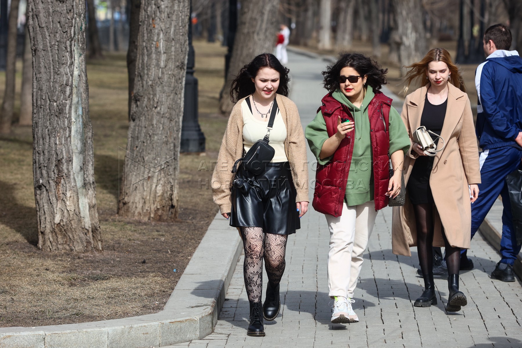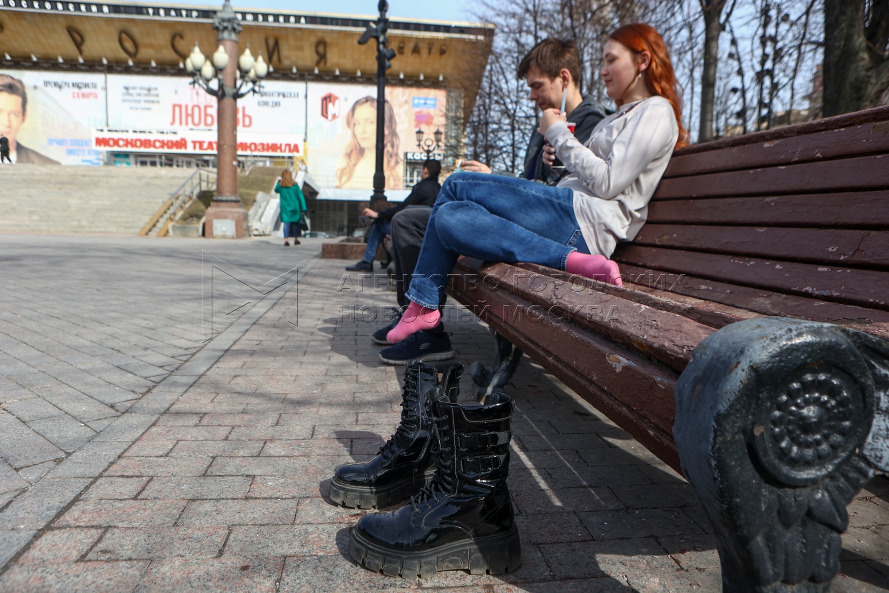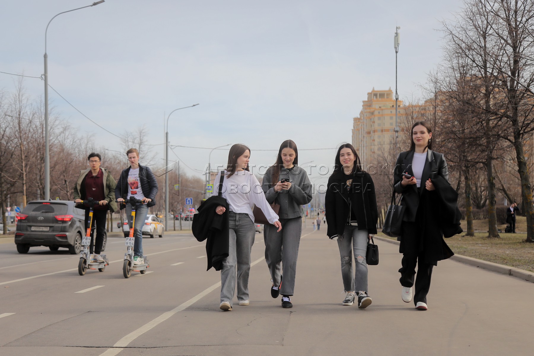 Теплая погода в Москве 1 апреля 2024 года. Подростки на улице.