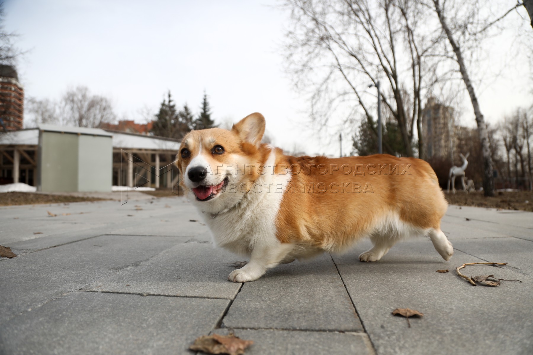 Теплая погода в Москве 1 апреля 2024 года. Собака корги.