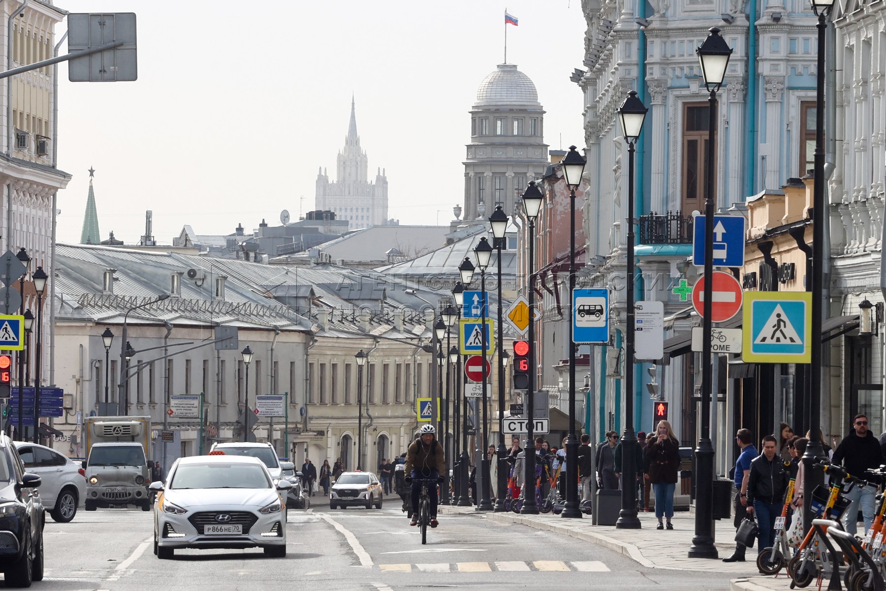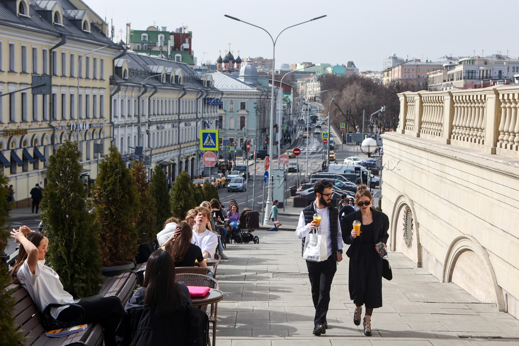 Теплая погода в Москве 1 апреля 2024 года. Улица Покровка.