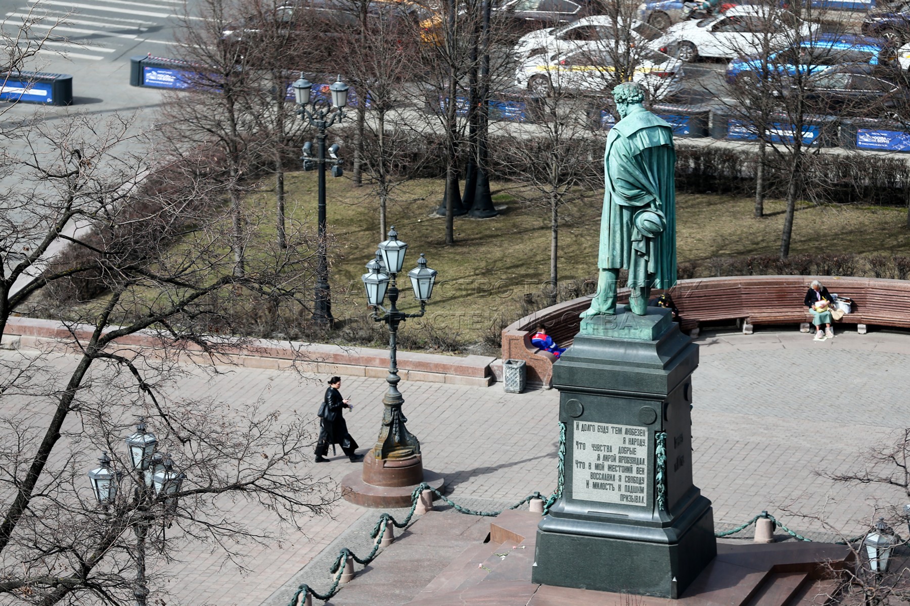 Теплая погода в Москве 1 апреля 2024 года. Памятник А. С. Пушкину на Пушкинской п...