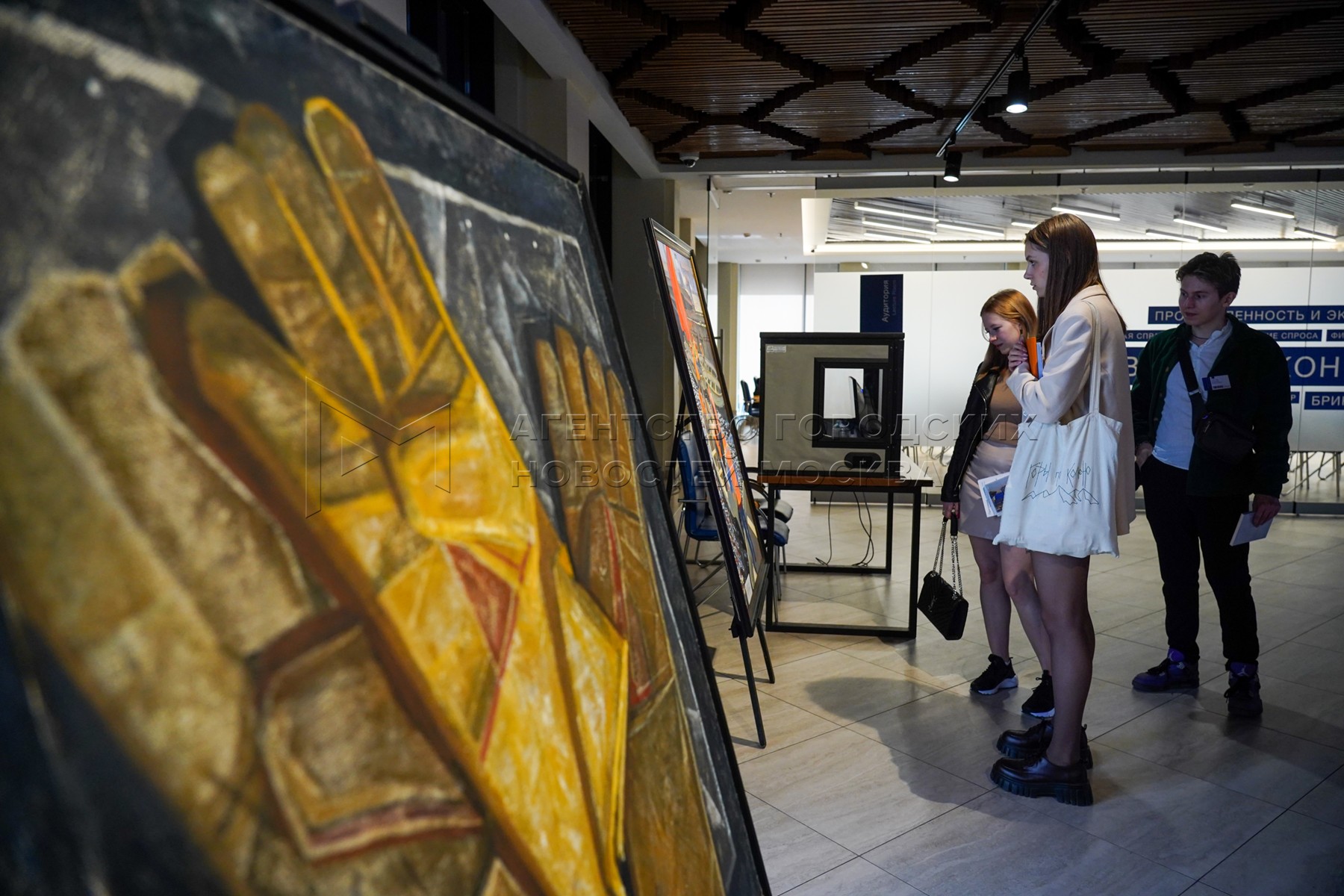 Логотип Московского экономического форума на экране на территории Цифрового делового пространства.