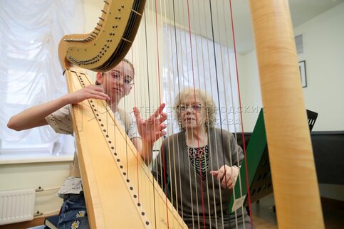 Занятие в классе арфы заслуженного работника культуры РФ, профессора РАМ имени Гн...