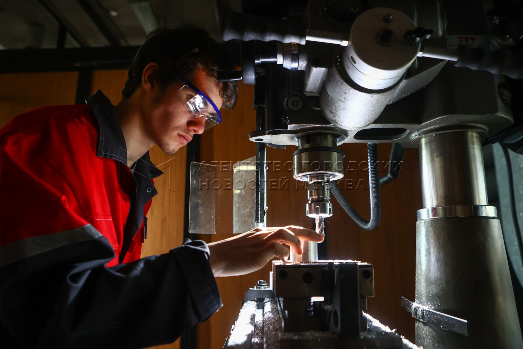 Работа на сверлильном станке. Иммерсивное шоу «Инженерный фиджитал» в Московском ...