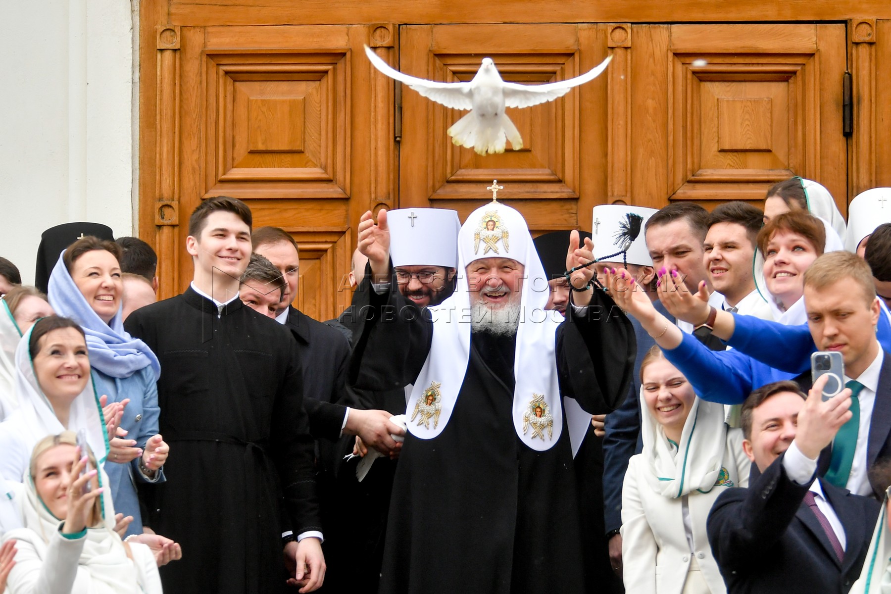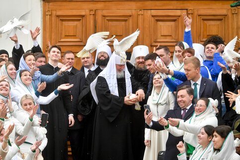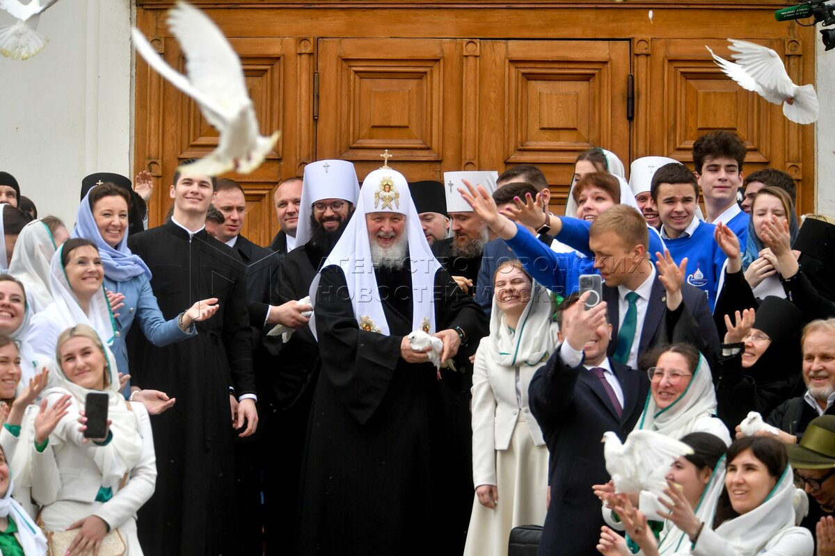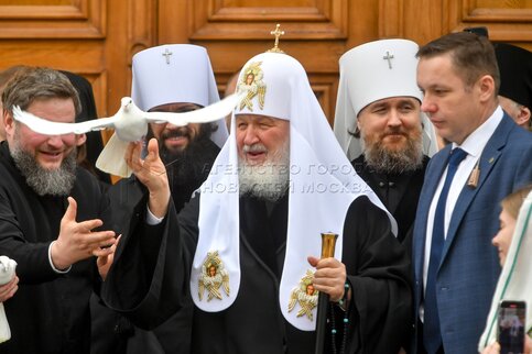 Патриарх Московский и всея Руси Кирилл выпустил голубей после богослужения в праз...