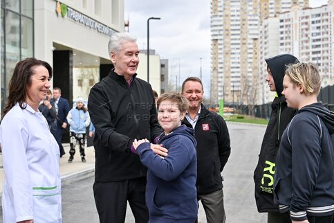 Мэр Москвы Сергей Собянин во время открытия новой детской поликлиники на ул. Лебе...