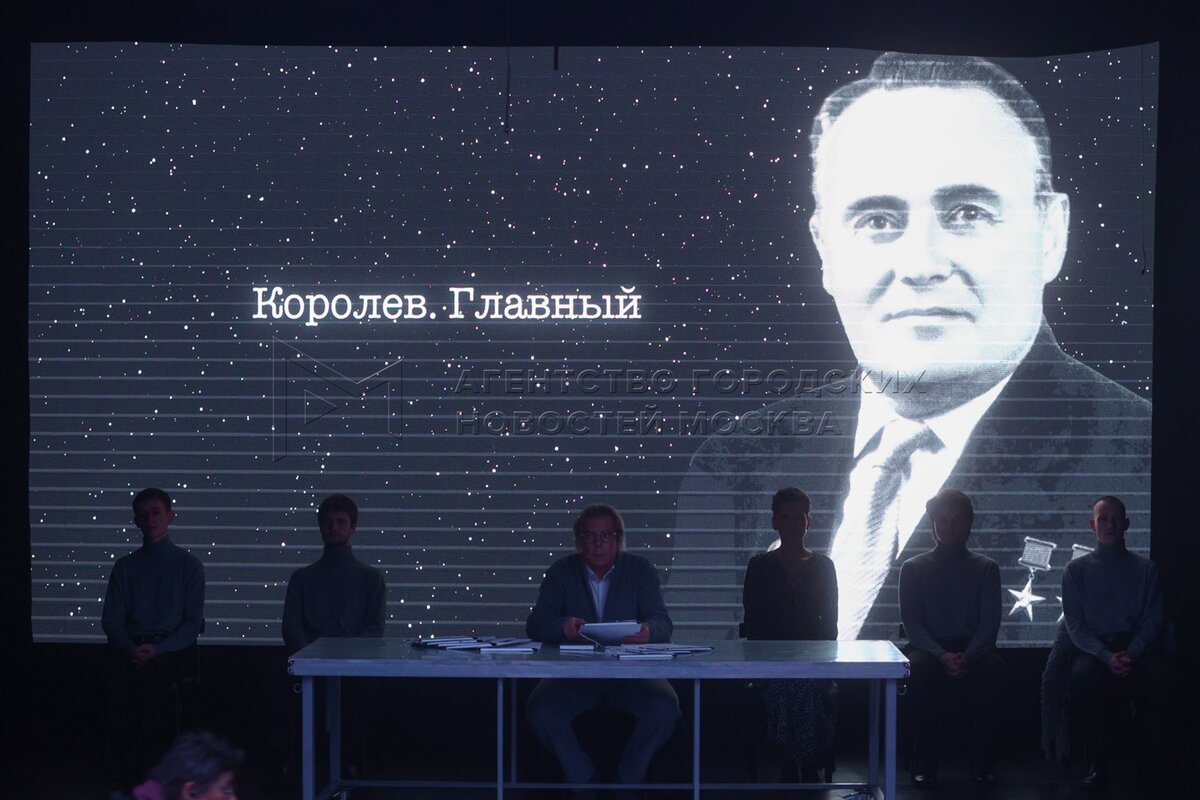 Актеры во время показа театрально-документального спектакля «Королев. Главный» в ...