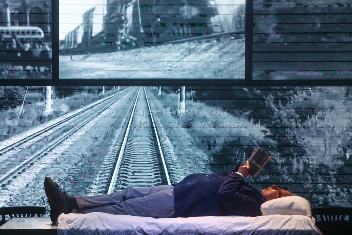 Актер Никита Бахметьев (на первом плане) во время показа театрально-документально...