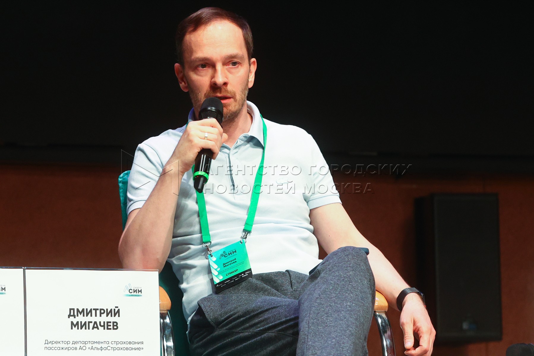 - Описание: Директор департамента страхования пассажиров «Альфастрахования» Дмитрий Мигачев во время панельной дискуссии «Просвещение в целях безопасности» на Международной отраслевой конференции микромобильности – съезда «На СИМ» в Цифровом деловом пространстве.