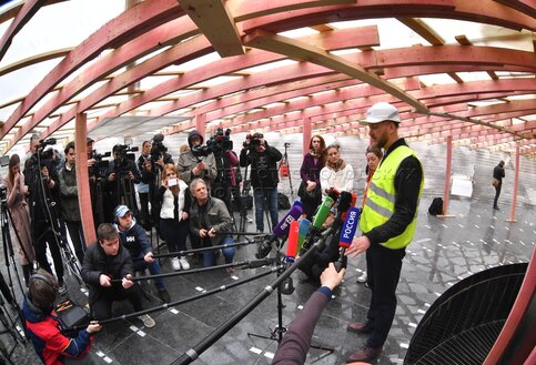 Руководитель проекта Илья Стадник на осмотре хода реставрации памятника первому к...
