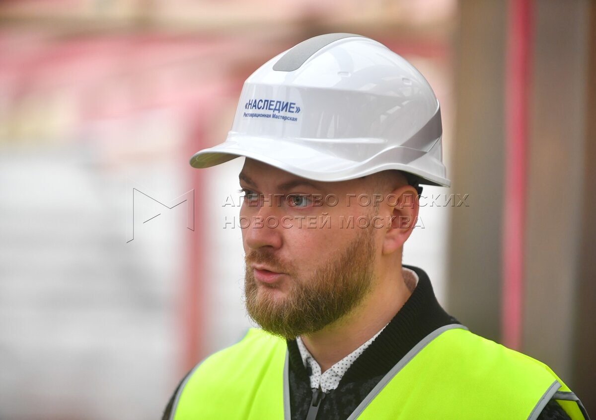 Глава Мосгорнаследия Алексей Емельянов на осмотре хода реставрации памятника перв...