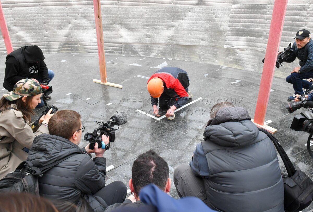 Реставрация памятника первому космонавту Юрию Гагарину на Ленинском проспекте.