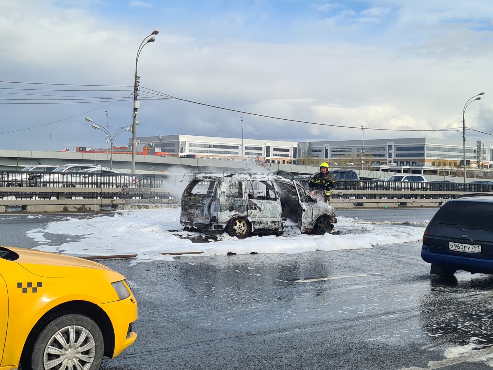 Пожарные ликвидировали возгорание автомобиля на ул. Липецкая в районе пересечения с МКАД, на выезде из района Бирюлево Восточное.
