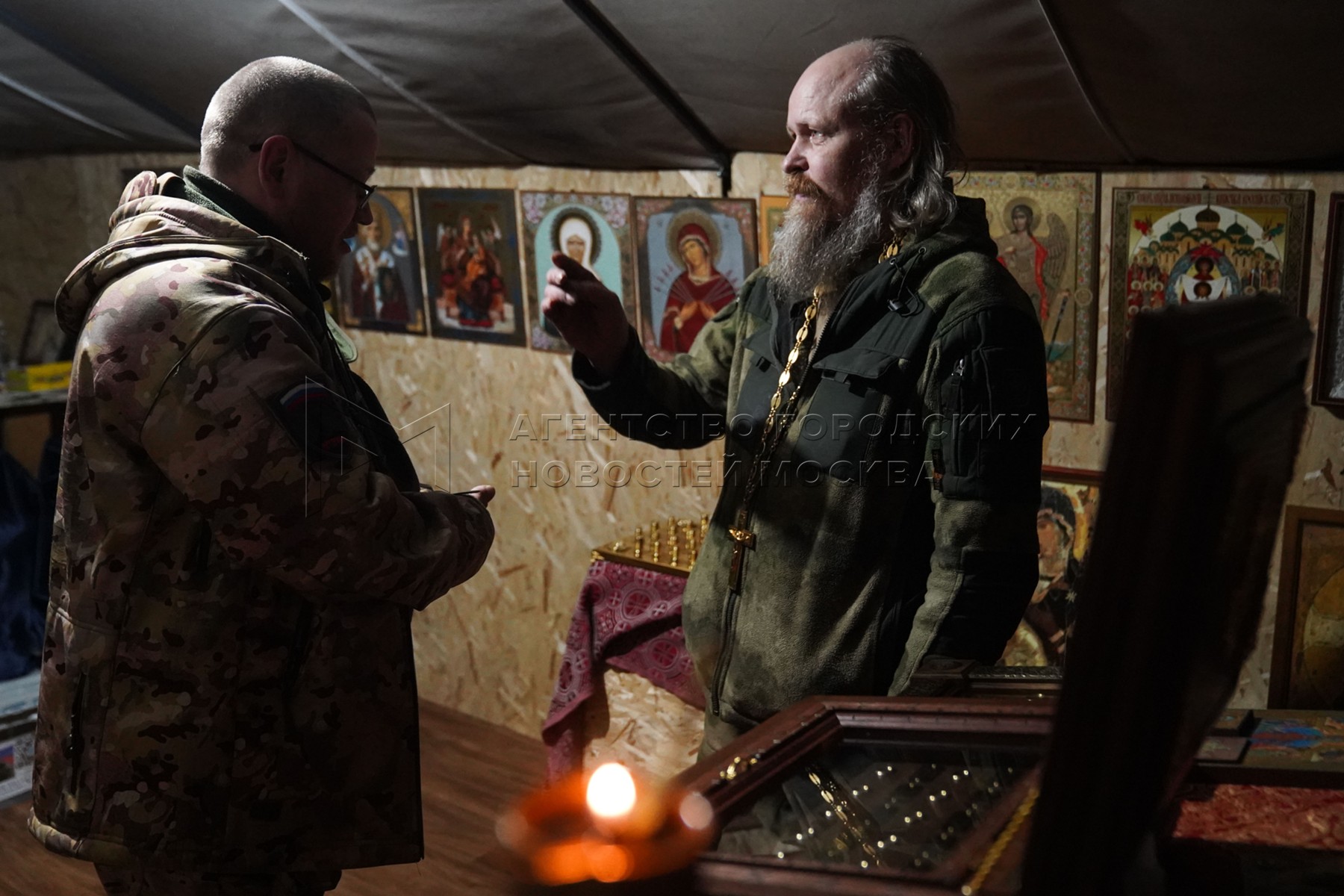 • Заголовок: Бригадный священник отец Николай Смиркин в полевом храме ОДШБр «Ветераны» в ДНР