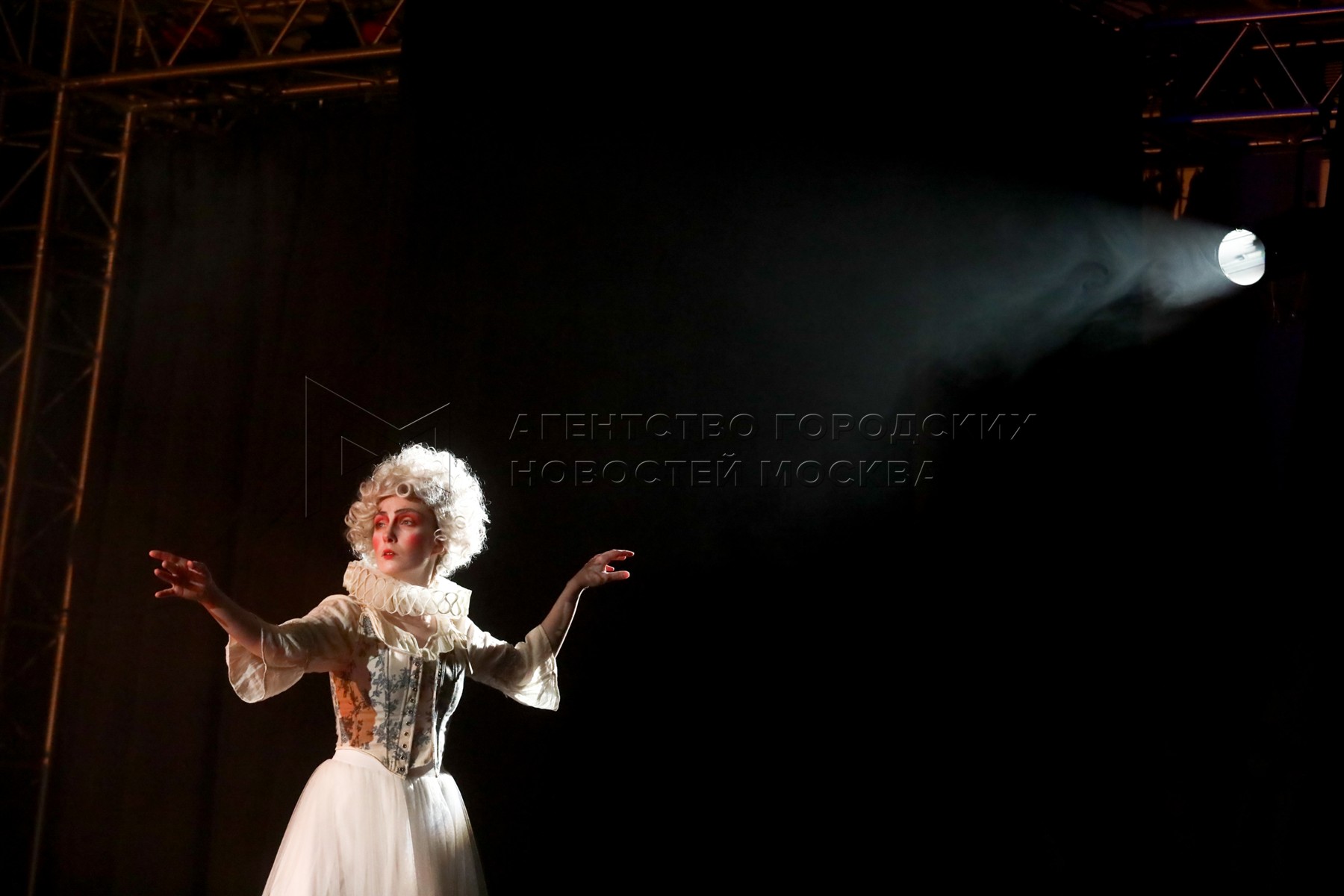 Показ спектакля «Хвала котам, или Приношение почтеннейшей публике» творческого объединения «Вахтанговский практикум» в открытом театральном пространстве «Арт-платформа» в Новом Манеже.