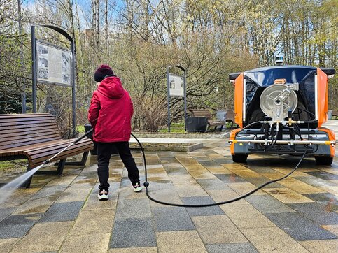 • Описание: Работа робота-уборщика «Пиксель» в парке 50-летия Октября на западе столицы.