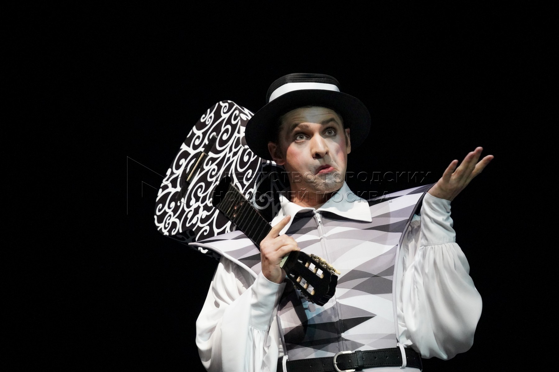Актер Алексей Петров в роли Фигаро (справа) во время показа премьерного спектакля...