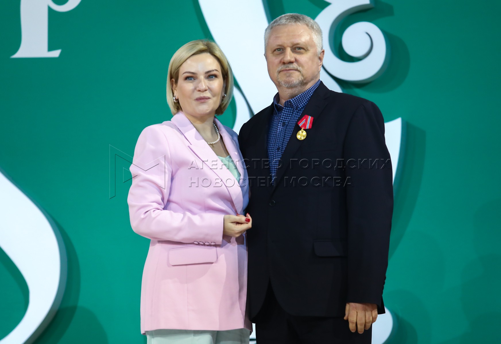 - Описание: Министр культуры Российской Федерации Ольга Любимова и доцент кафедры классического и дуэтного танца Московской государственной академии хореографии (МГАХ) Михаил Шарков на церемонии награждения государственными наградами деятелей культуры в рамках международной выставки-форума «Россия» на ВДНХ.