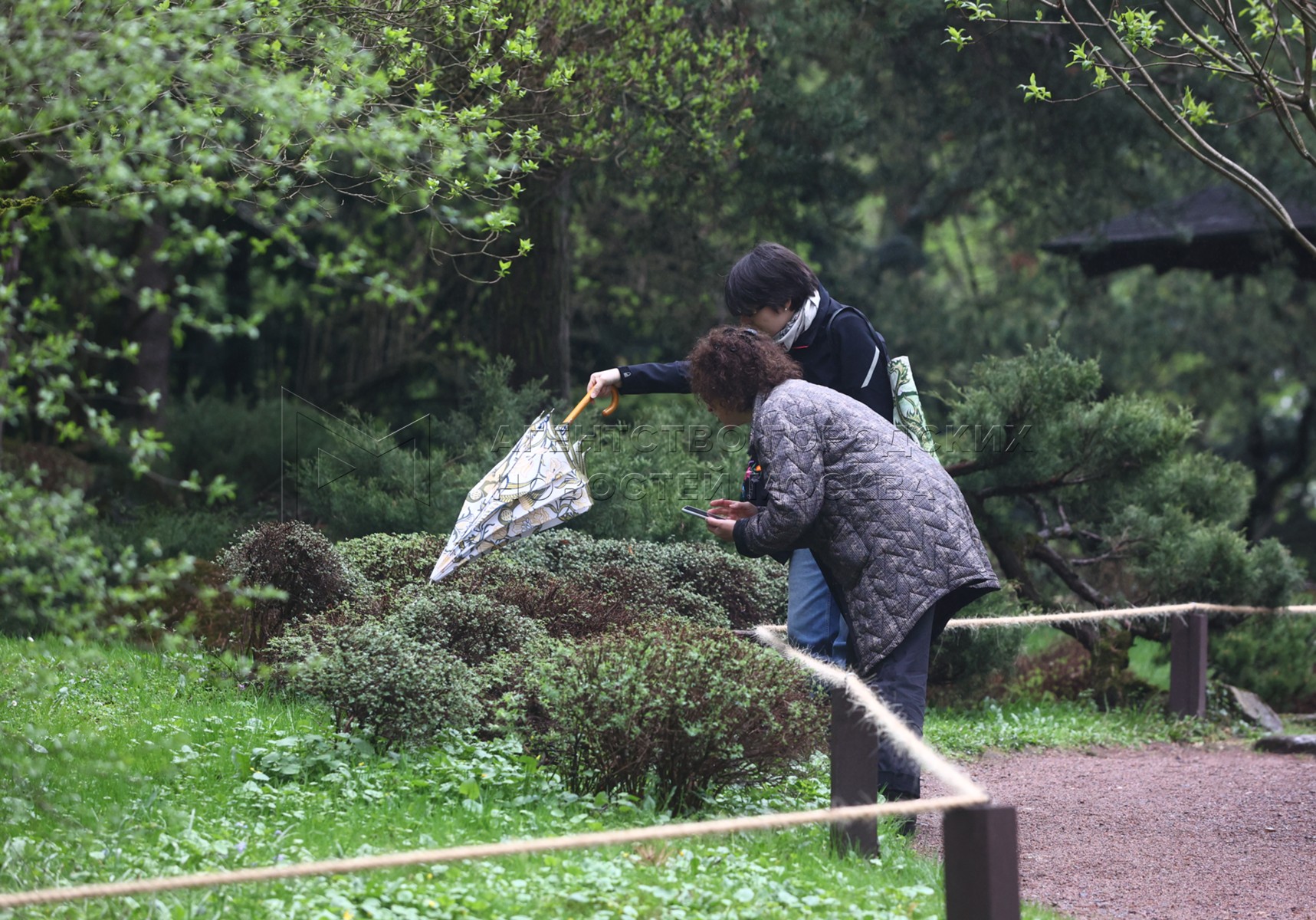 Экспозиция «Японский сад» в Главном ботаническом саду имени Цицина Российской академии наук в дождливую погоду.
