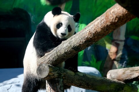 • Описание: Панды в уличном вольере Московского зоопарка.
