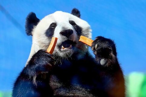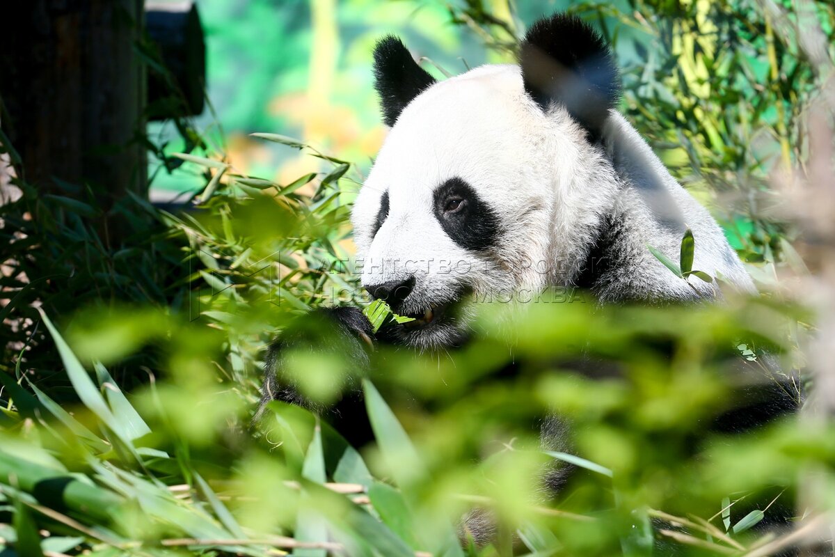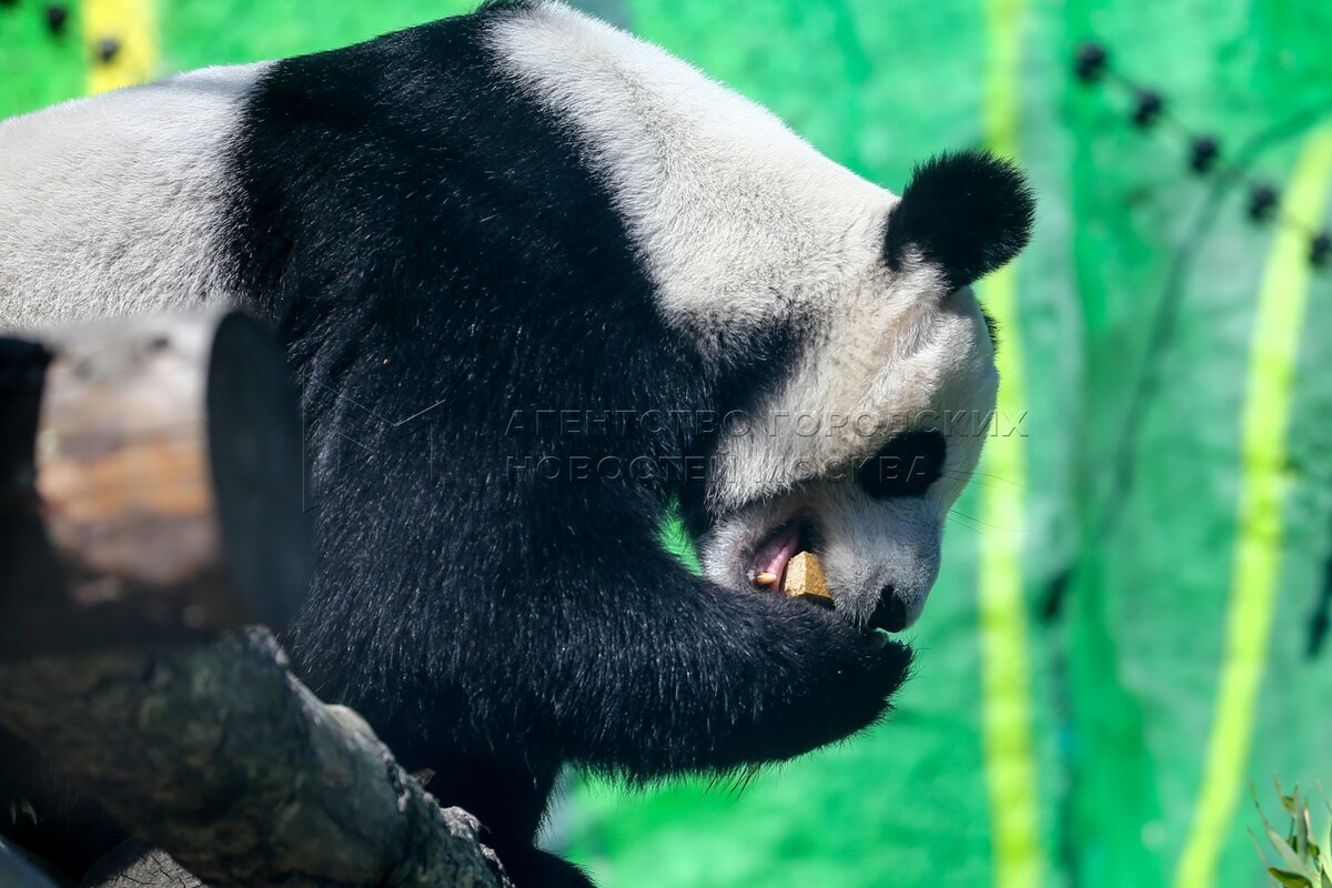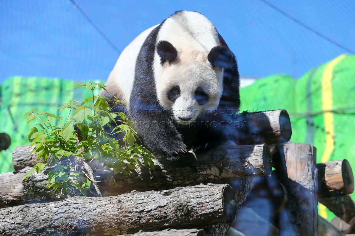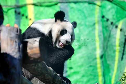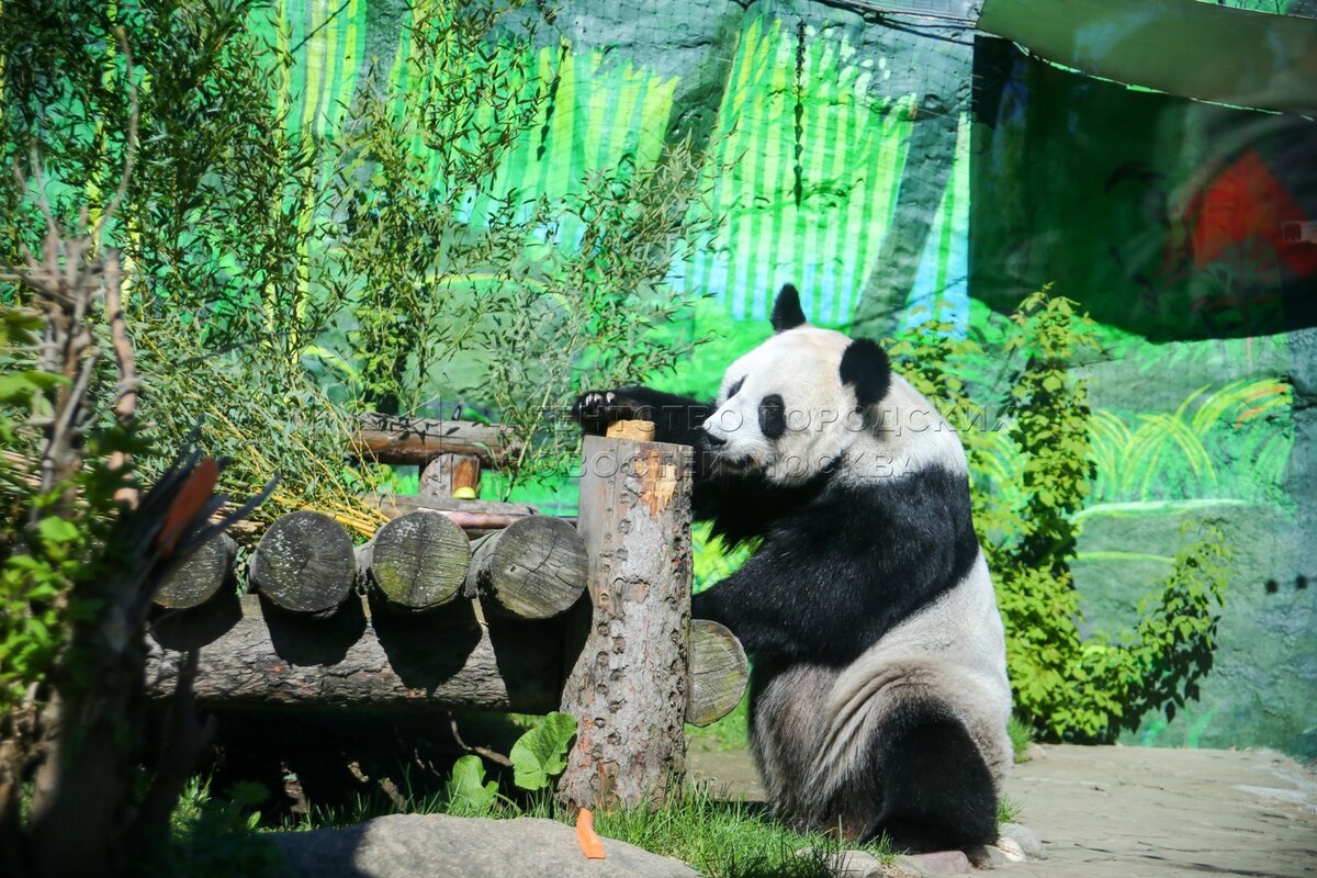 • Заголовок: Панды в уличном вольере Московского зоопарка