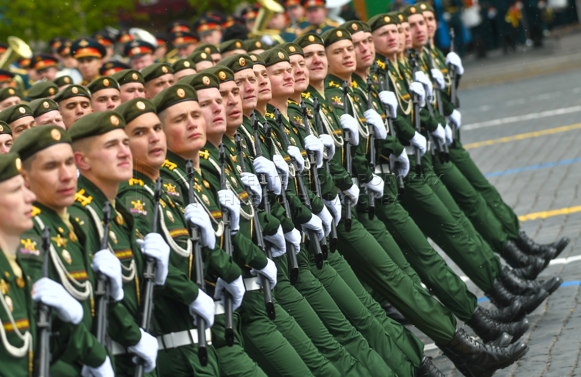 Курсанты Военного университета Министерства обороны РФ во время военного парада, посвященного 79-й годовщине Победы в Великой Отечественной войне на Красной площади.