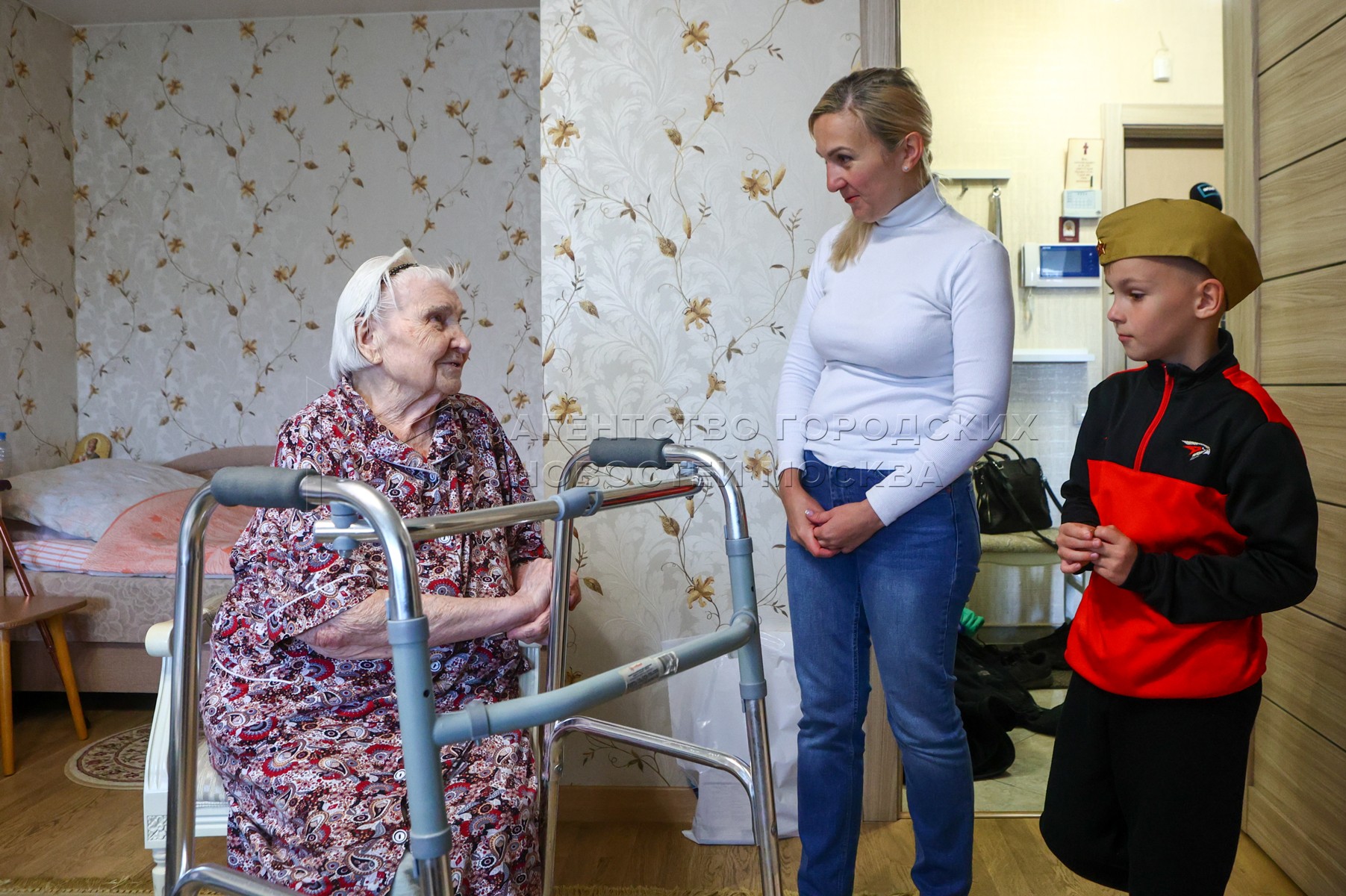 • Заголовок: Поздравление ветерана ВОВ Пелагеи Красноперко на дому