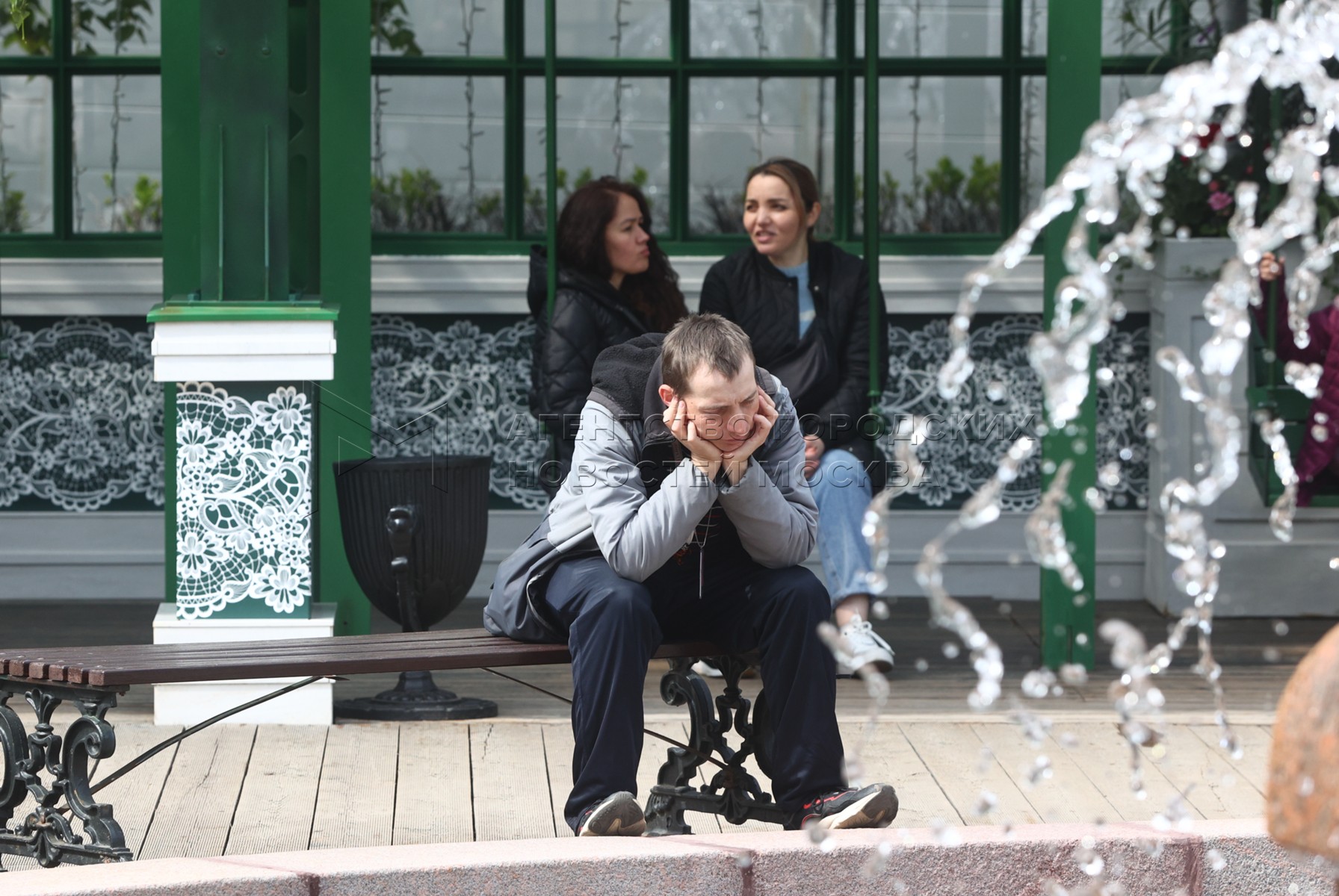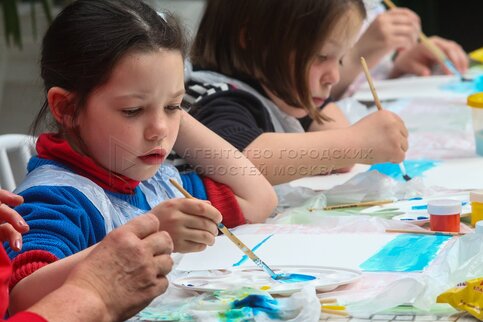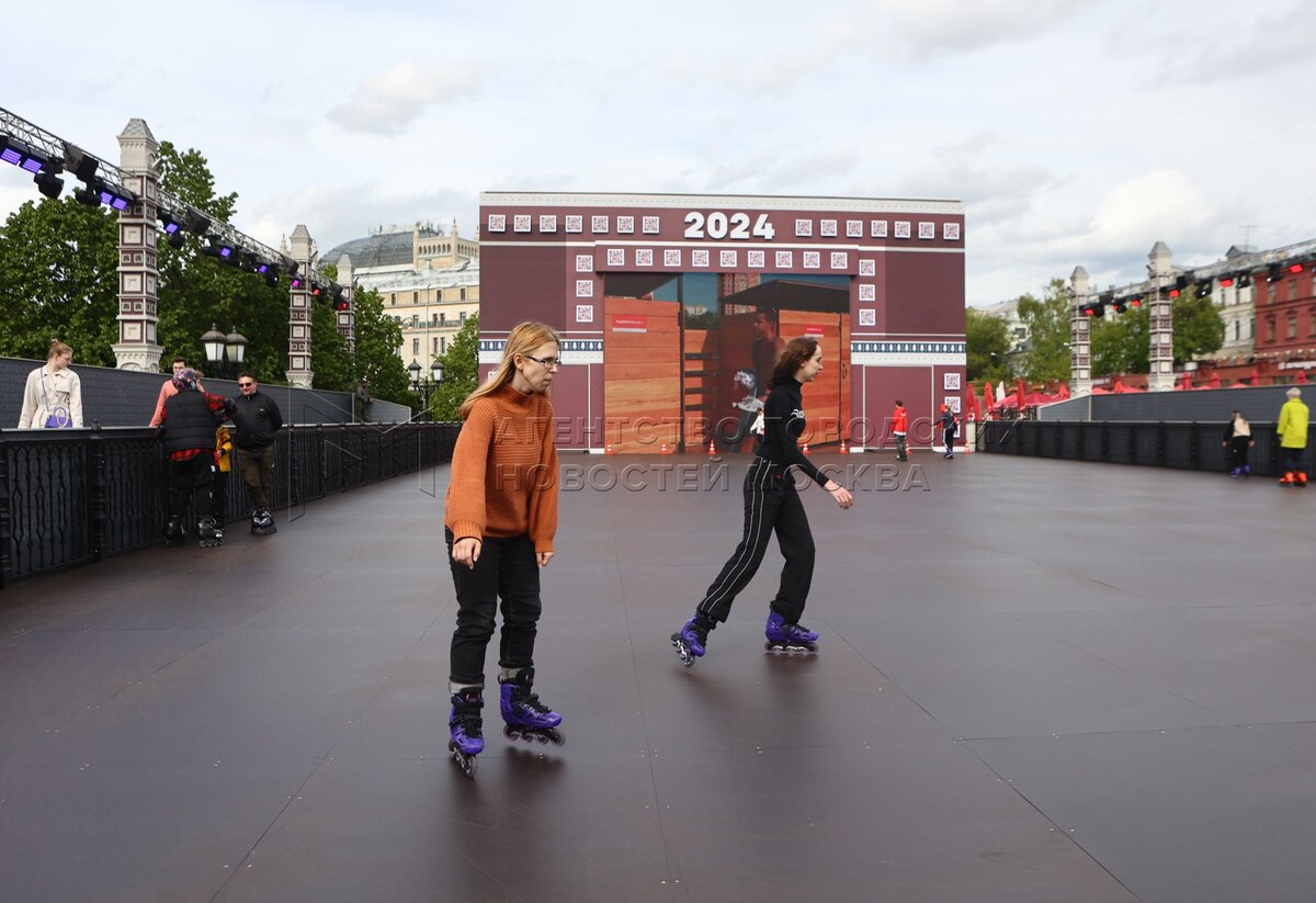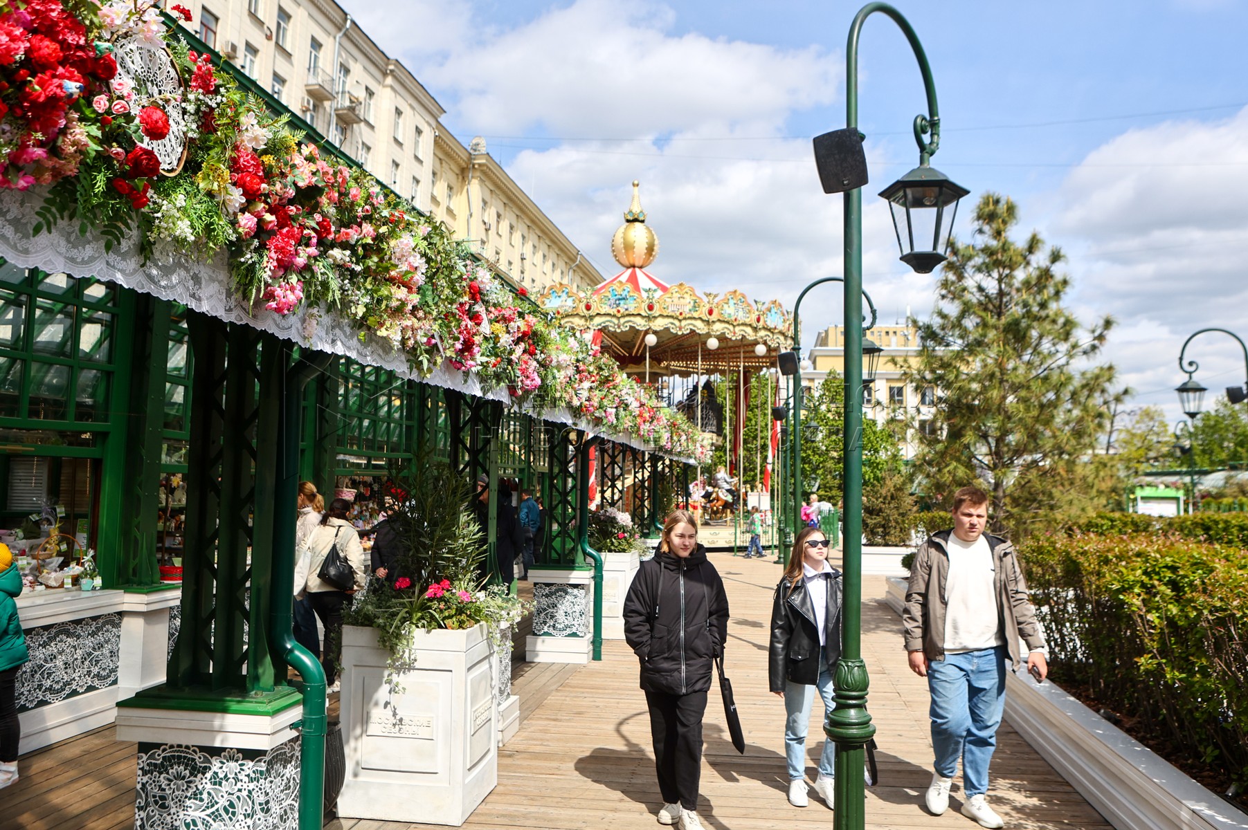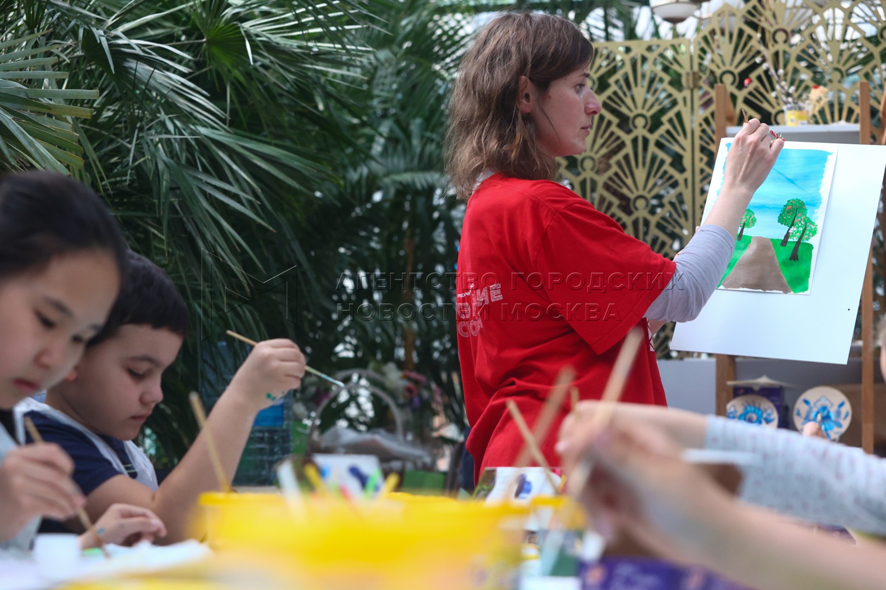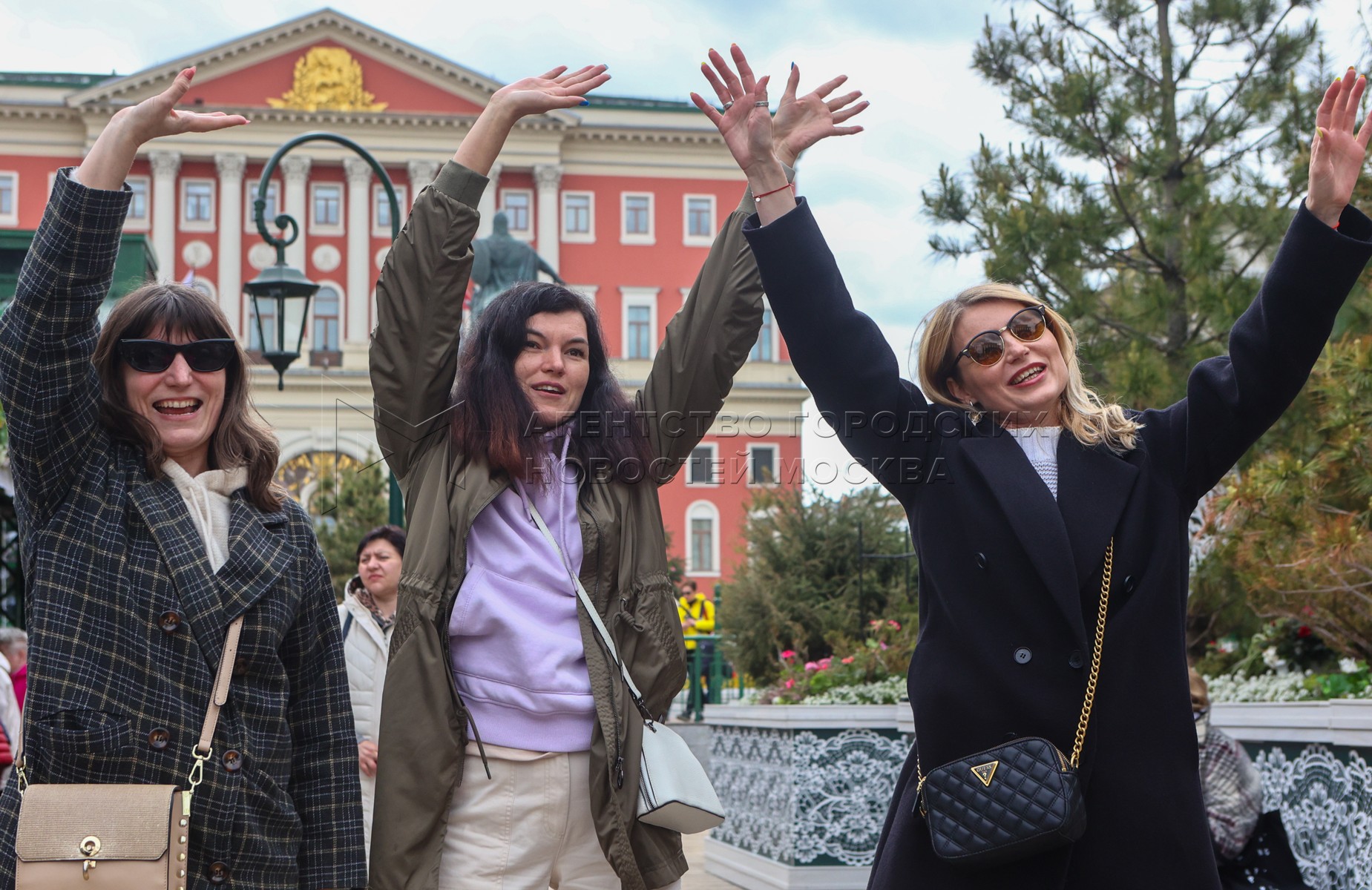 Мастер-классы и отдыхающие на площадке фестиваля «Московская весна» на Тверской п...
