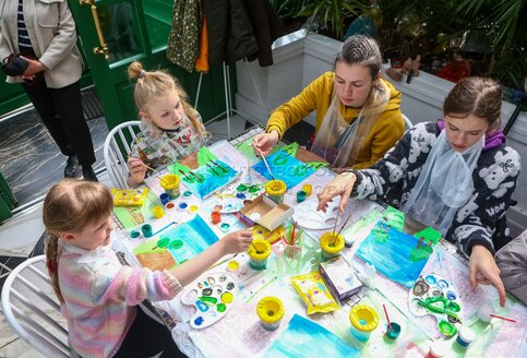 Мастер-классы и отдыхающие на площадке фестиваля «Московская весна» на Тверской площади.