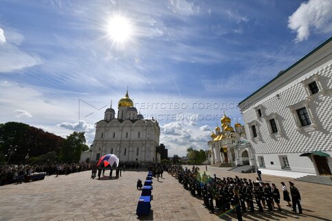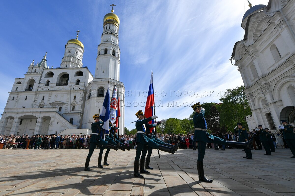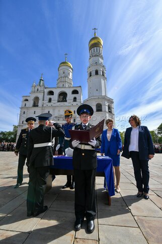 - Описание: Церемония приведения к торжественным клятвам учащихся кадетских и юнармейских классов Федеральной службы охраны РФ (ФСО России) на Соборной площади Московского Кремля.