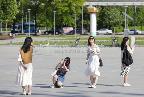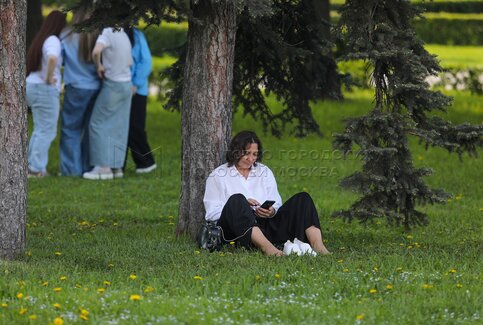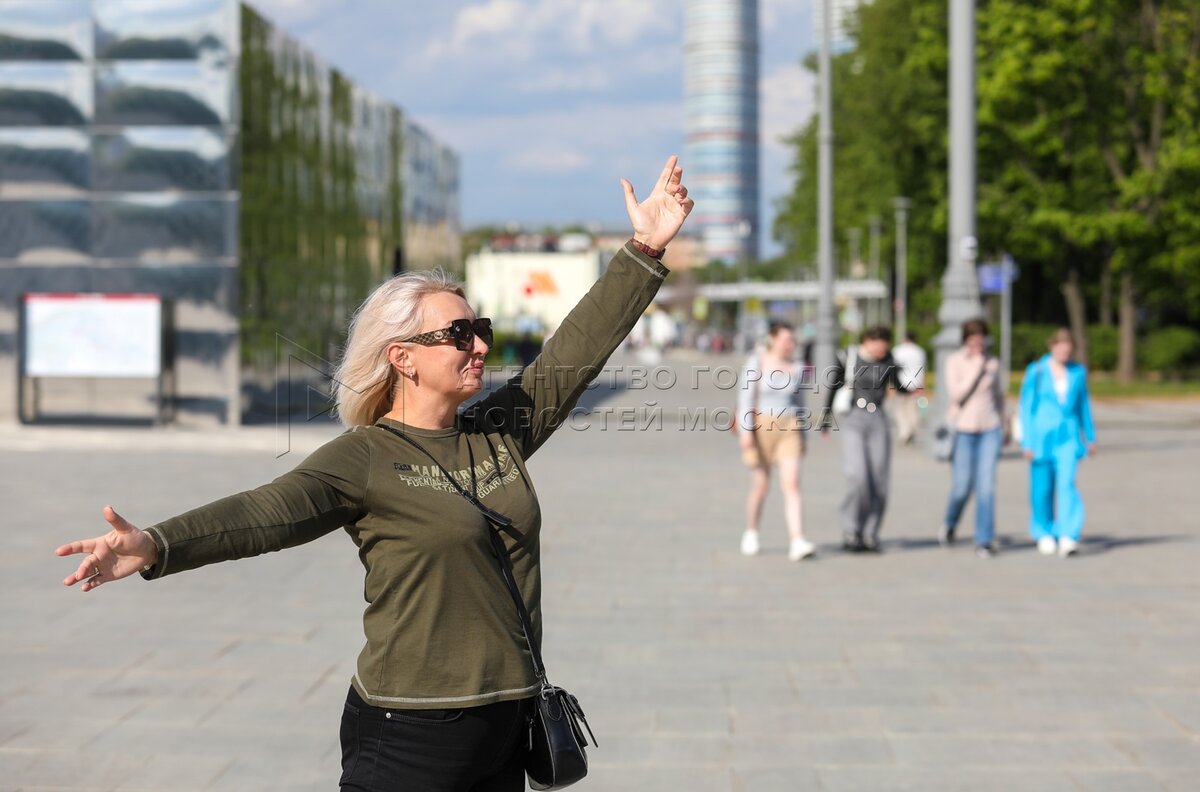 - Описание: Люди гуляют в теплый весенний день в Москве. Воздух в отдельных районах столицы днем в понедельник прогрелся выше плюс 25 градусов.