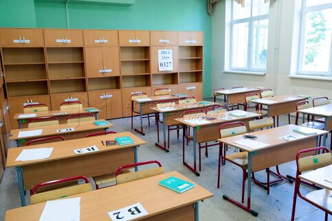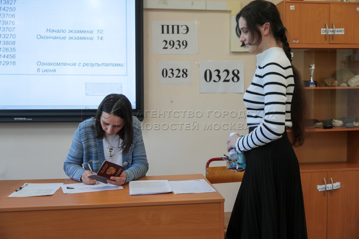 Работа пункта проведения Единого государственного экзамена (ЕГЭ) на базе школы Марьина Роща имени Орлова на ул. Двинцев, д. 10.