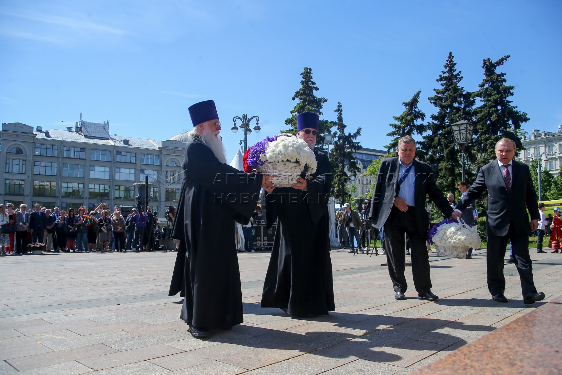 - Описание: Заместитель руководителя Департамента национальной политики и межрегиональных связей города Москвы, начальник Управления по связям с религиозными организациями Константин Блаженов (второй справа) и директор Славянского фонда России, член Совета по делам национальностей при правительстве Москвы Кирилл Мирейский (справа). Торжественная церемония в честь Дня славянской письменности и культуры возле памятника Святым равноапостольным Кириллу и Мефодию на Славянской площади.