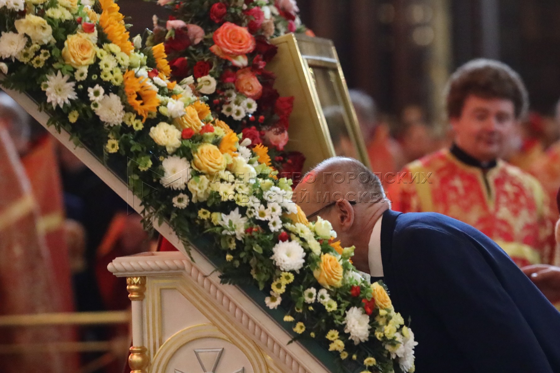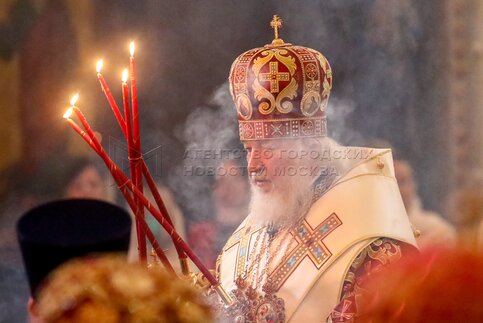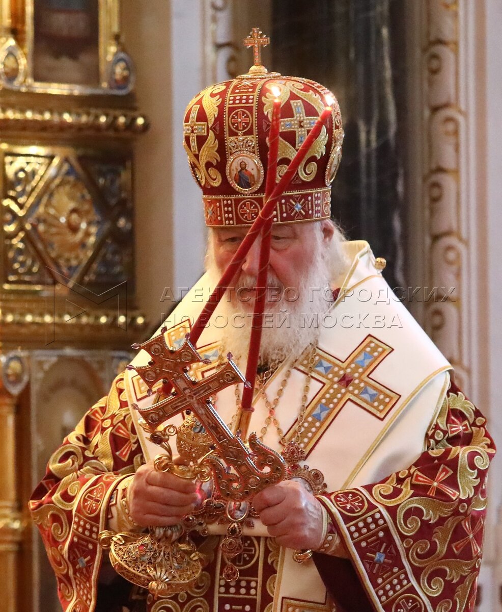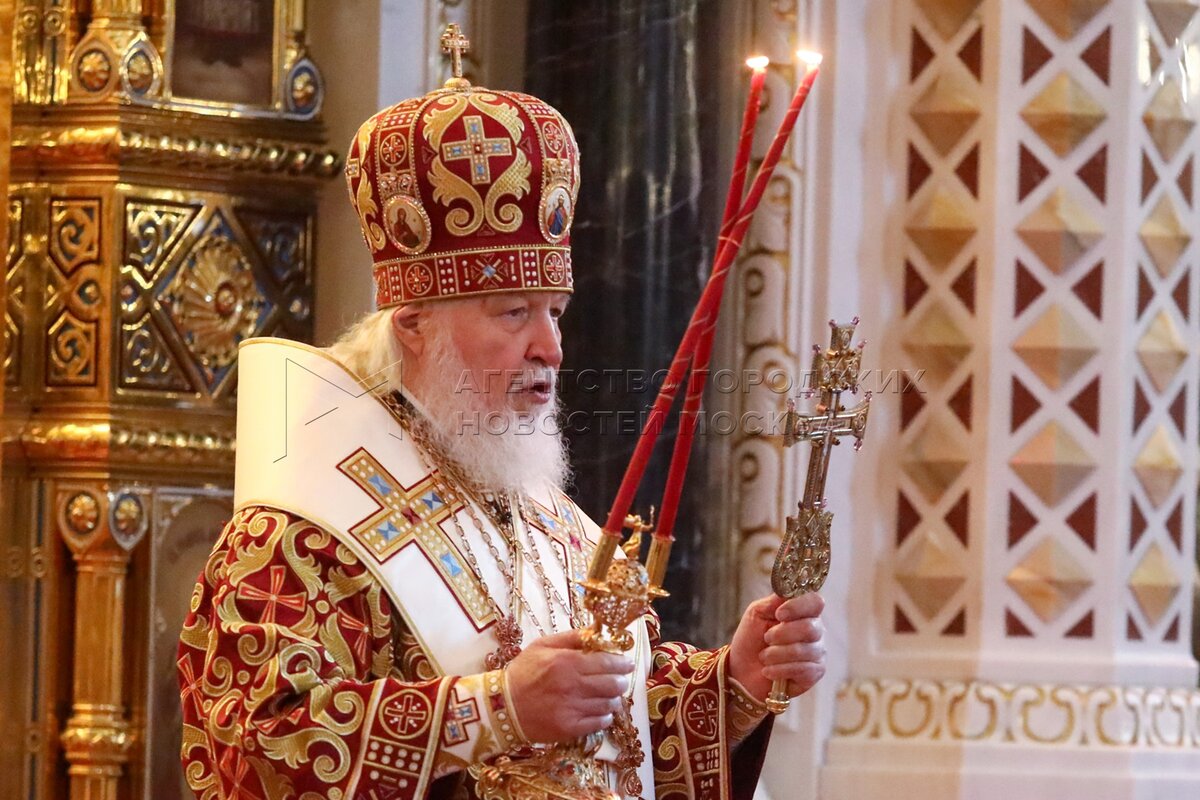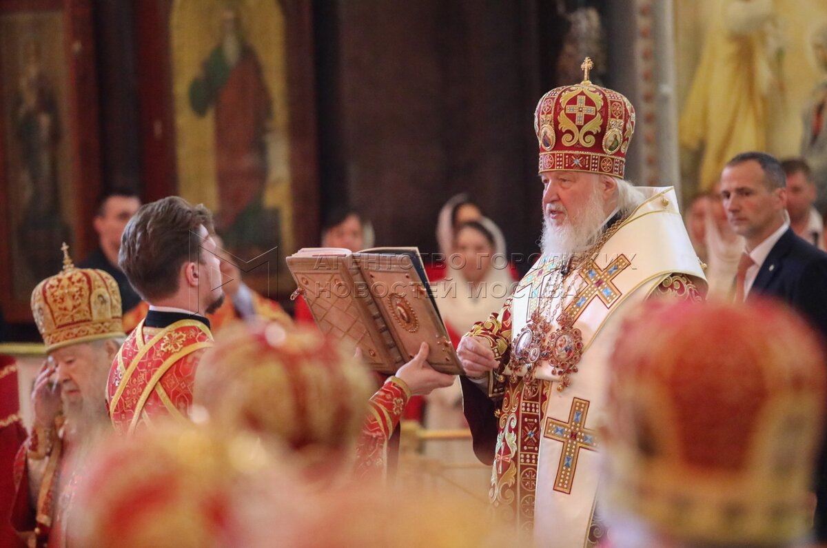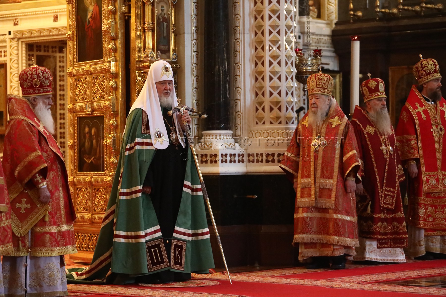Патриарх Московский и всея Руси Кирилл в кафедральном соборном храме Христа Спаси...