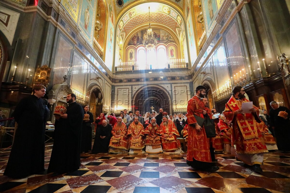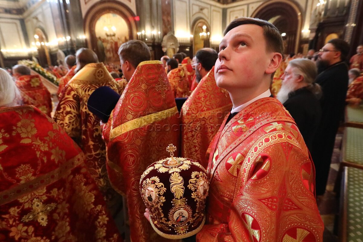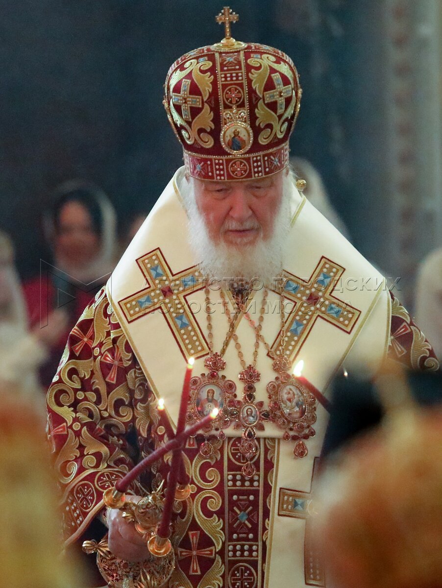 Патриарх Московский и всея Руси Кирилл (в центре) в кафедральном соборном храме Х...