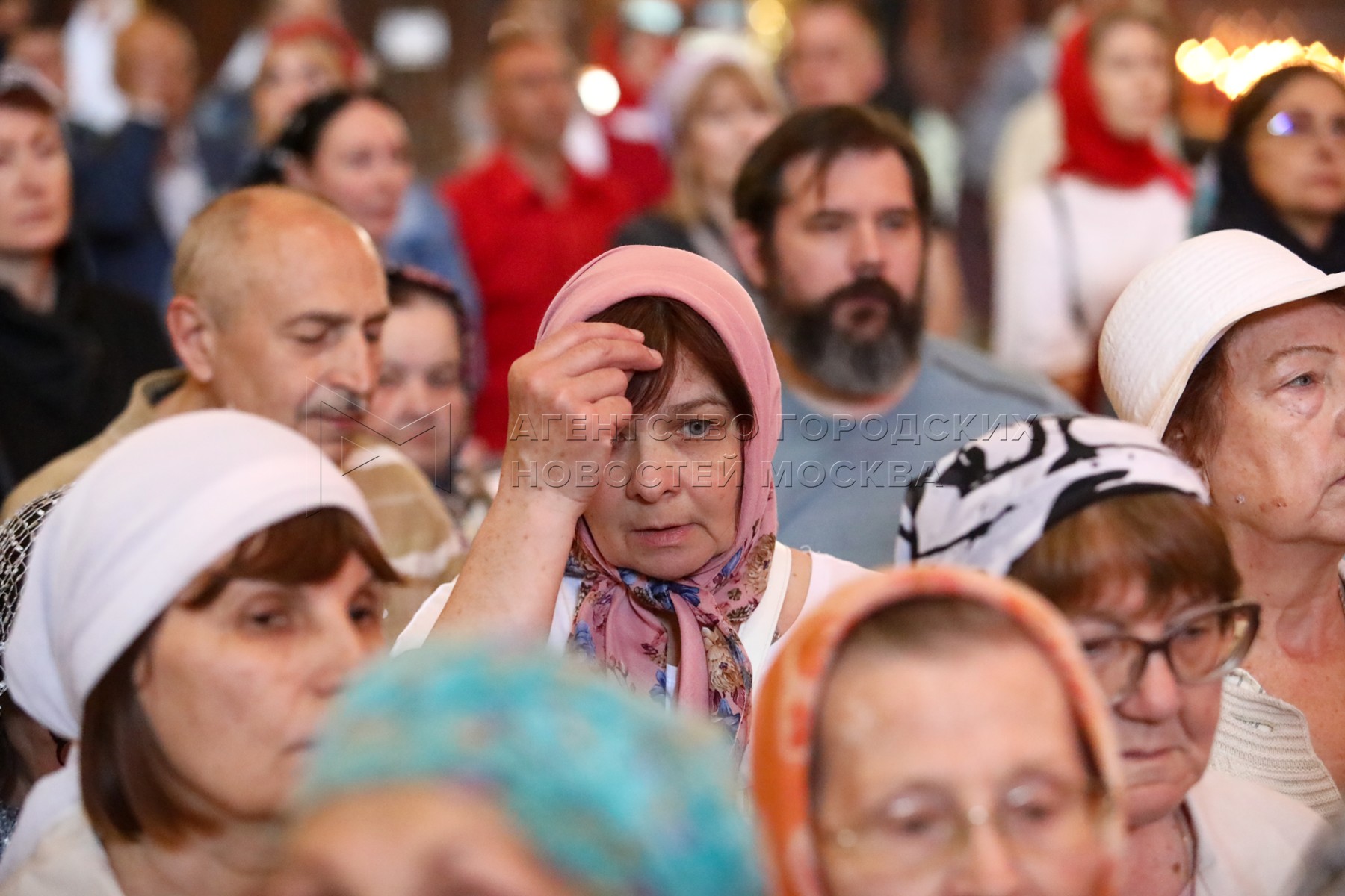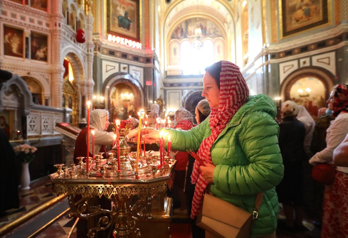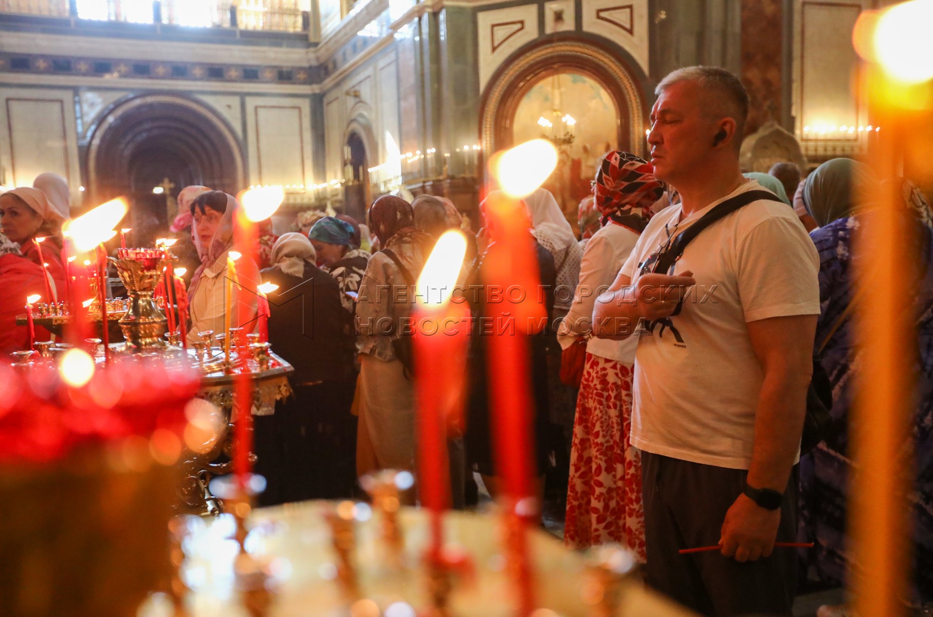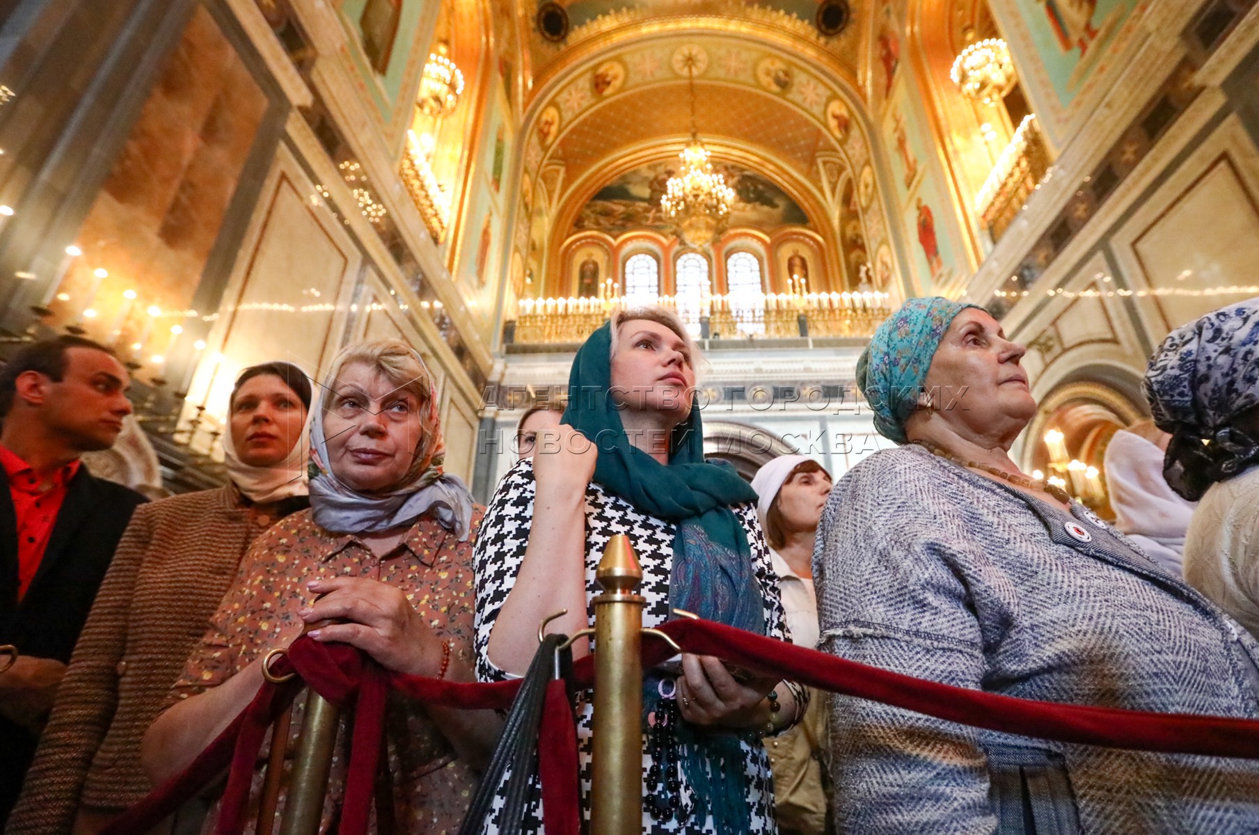 Верующие во время Божественной литургии в день памяти святых равноапостольных Меф...