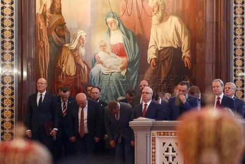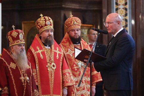 Заместитель председателя правительства РФ Дмитрий Чернышенко во время Божественно...